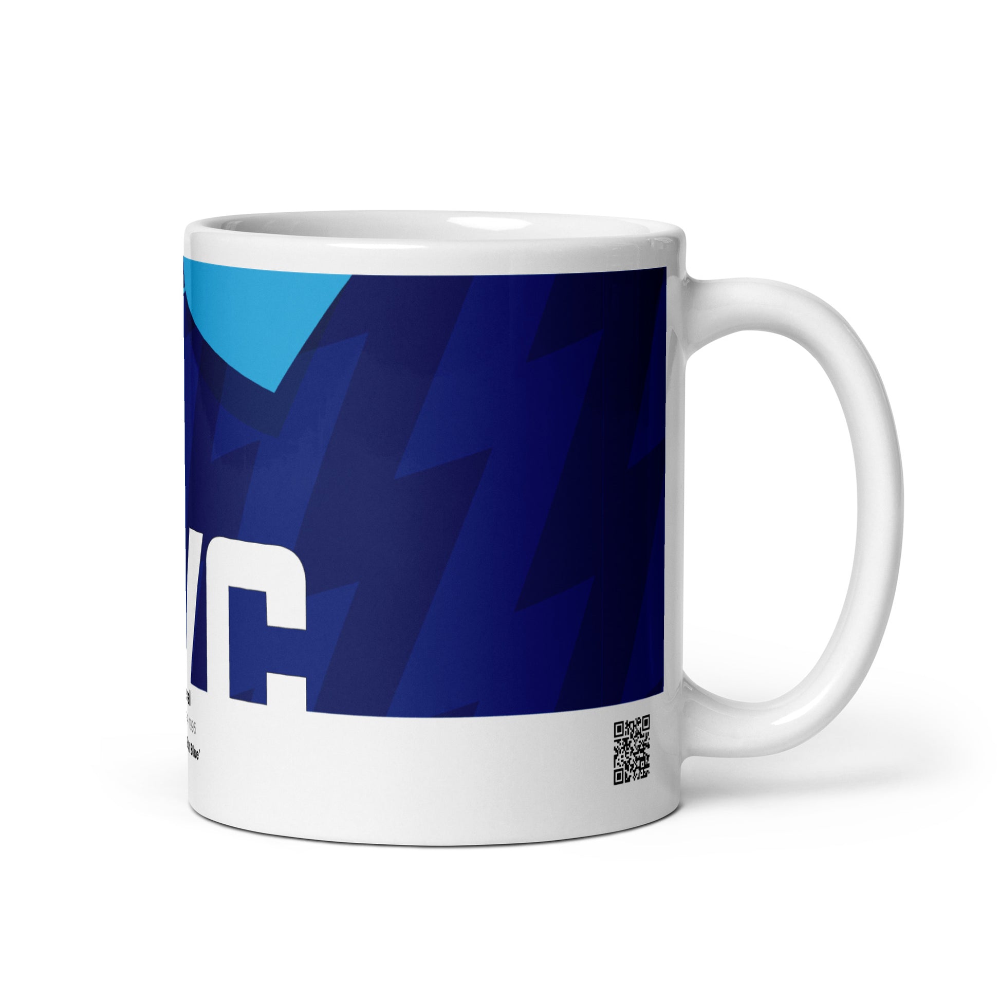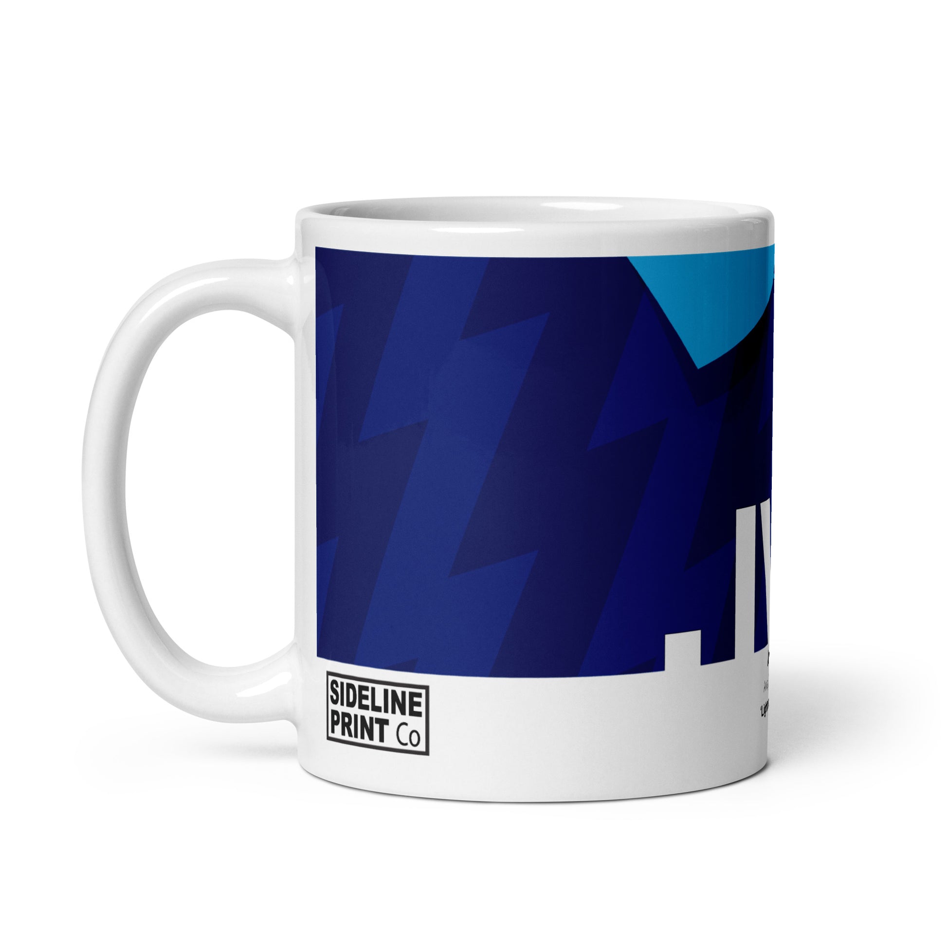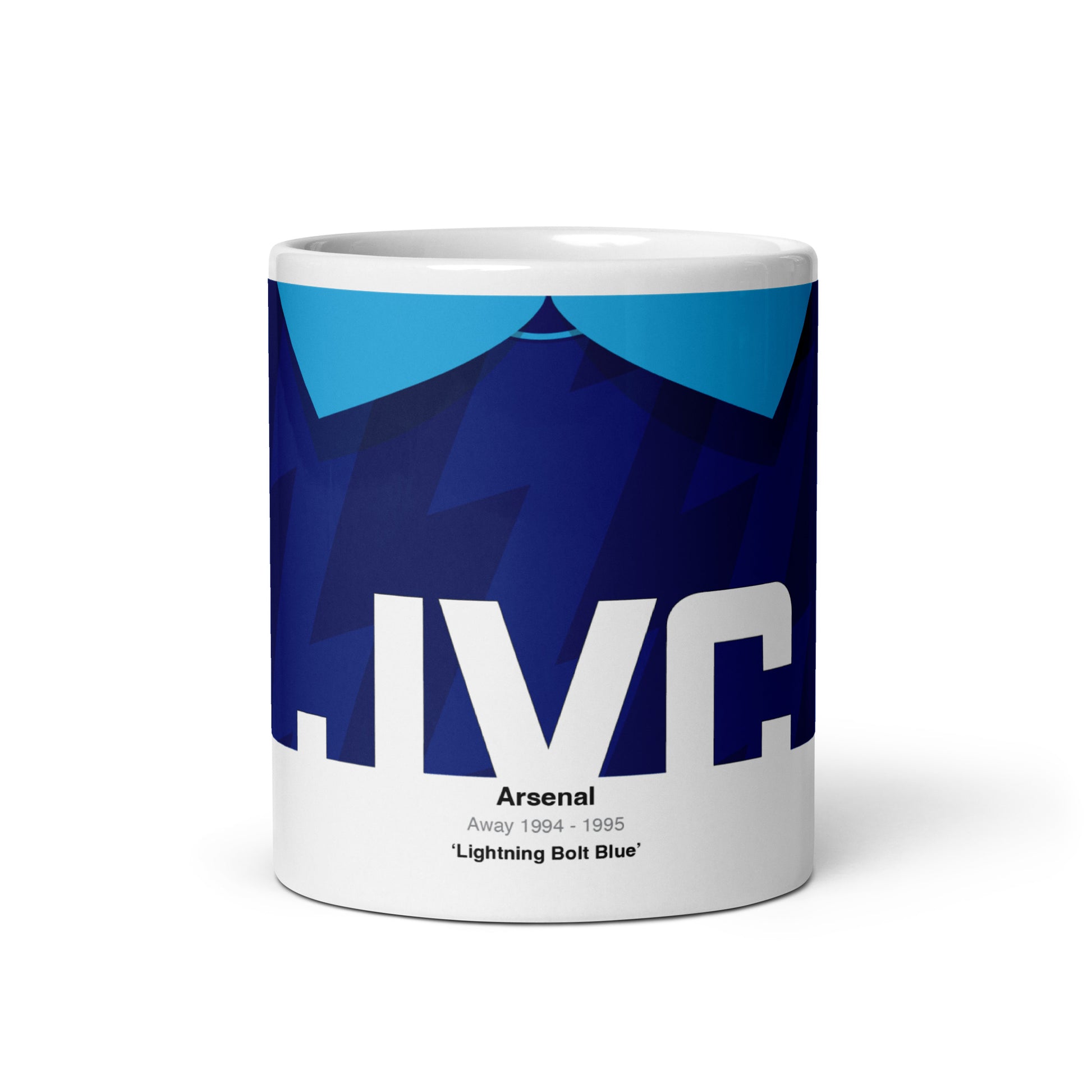 Hey, Arsenal fans! Light up your tea time with our Arsenal Blue Lightning Bolt Kit Mug, inspired by the iconic 1990's design that's as striking as a Thierry Henry volley. This mug is as blue as a North London sky and holds enough brew to get you through those electrifying European nights. Microwave and dishwasher safe, it's the perfect gift for any Gunners supporter with a love for vintage kits. Order yours today and raise a toast to Arsenal's electric style. Cheers to the Gunners!