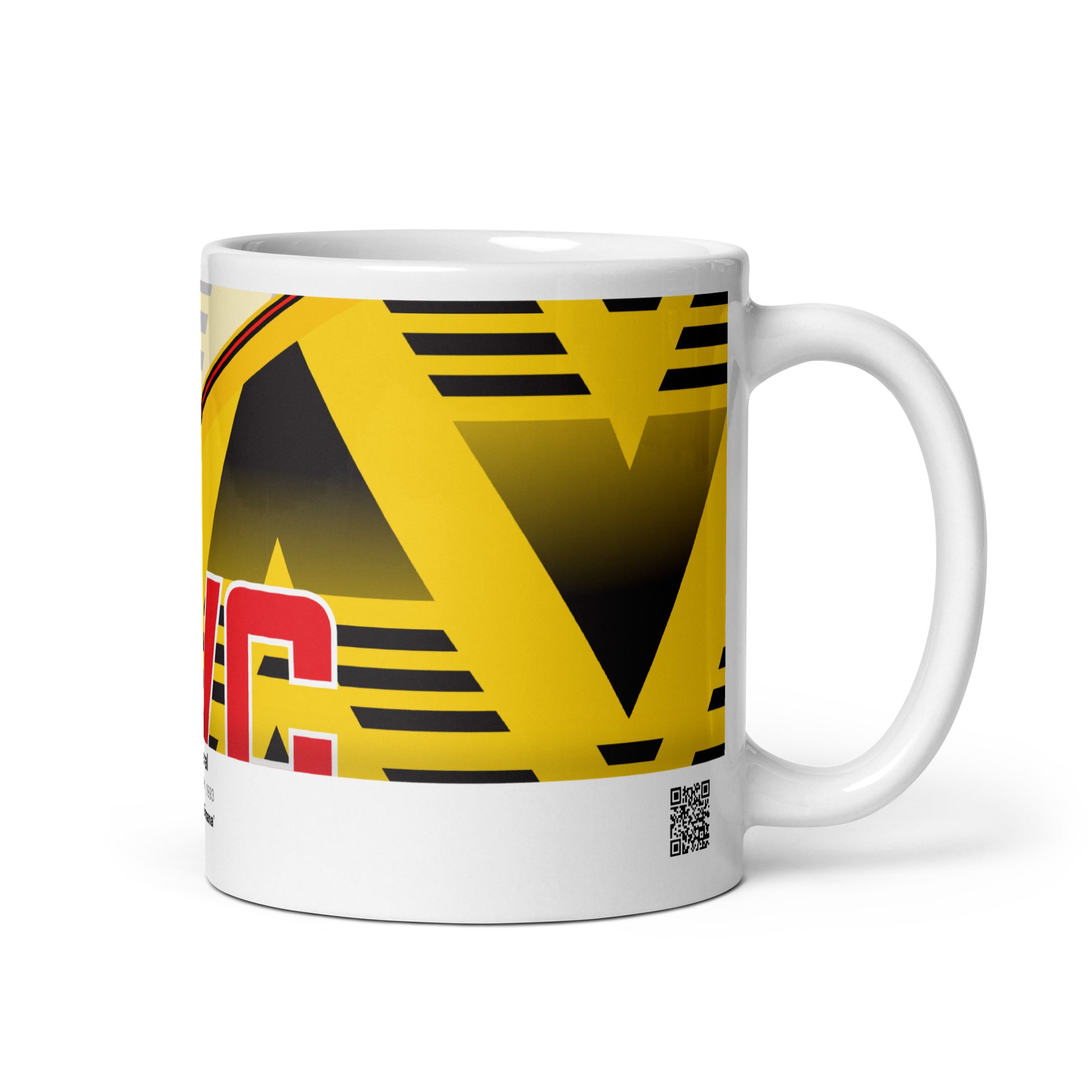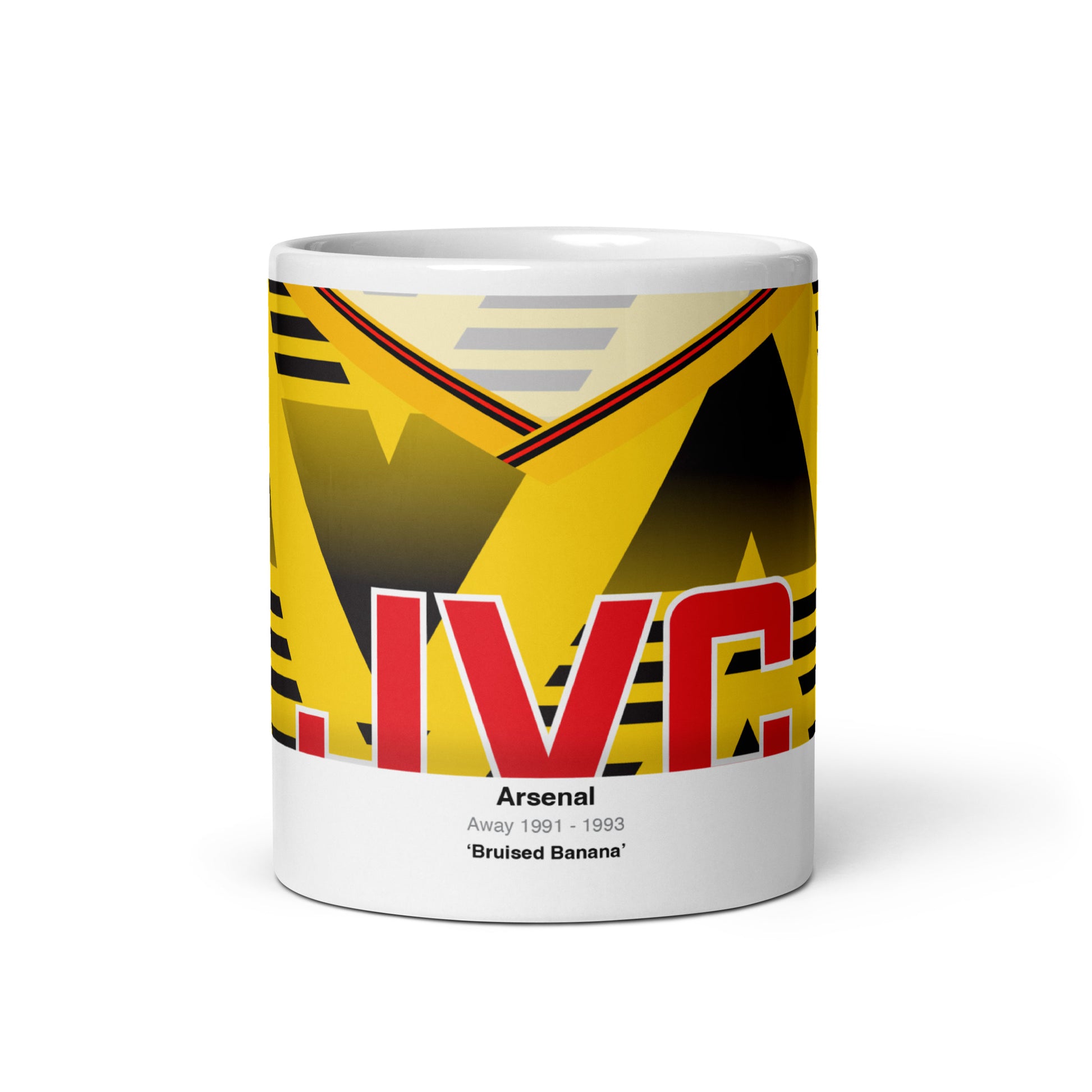 Hey, Arsenal fans! Score big on style with our Arsenal Bruised Banana Kit Mug, inspired by the iconic early '90s design that's as legendary as Bergkamp's goals. This mug is as vibrant as an Arsenal counter-attack and holds enough brew to get you through those thrilling North London derbies. Microwave and dishwasher safe, it's the perfect gift for any Gunners supporter with a taste for nostalgia. Order yours today and raise a toast to Arsenal's golden era. Cheers to the Gunners!