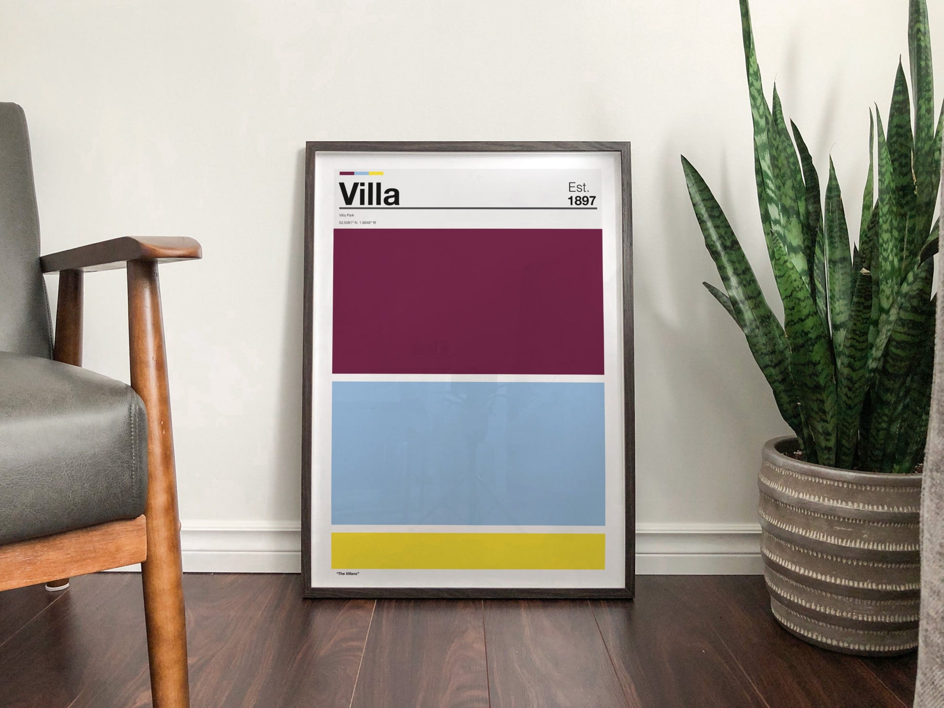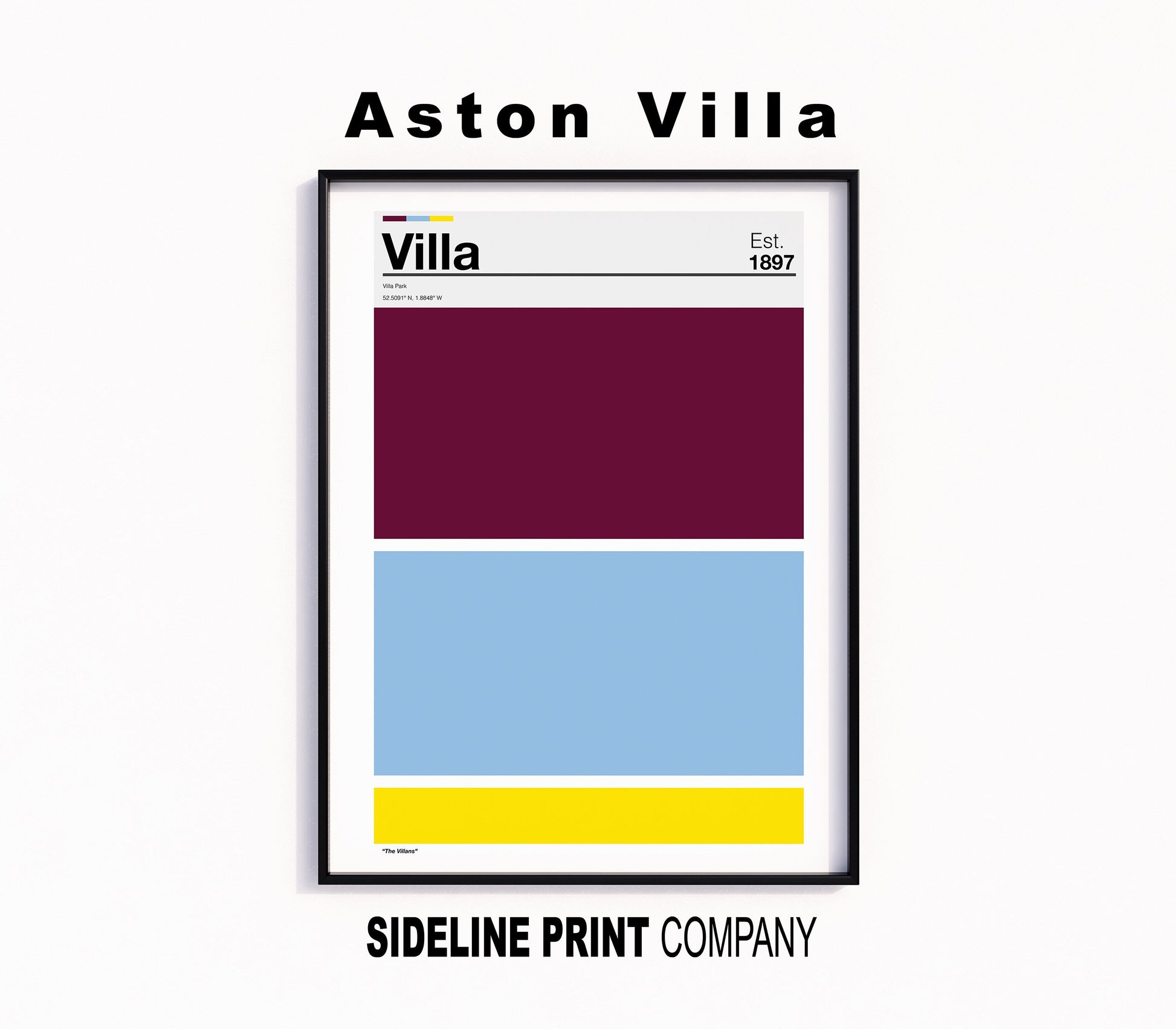 Celebrate the Villans with our Aston Villa football team colours art print. Displaying the claret and blue with pride in a contemporary style, this print is perfect for fans looking to show their support for the Midlands club.