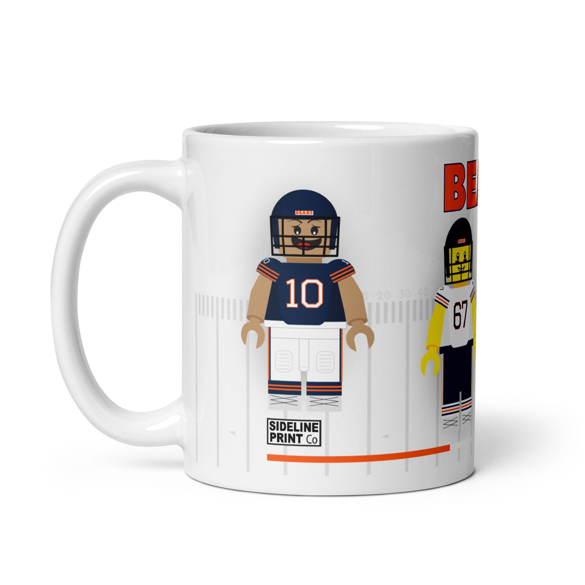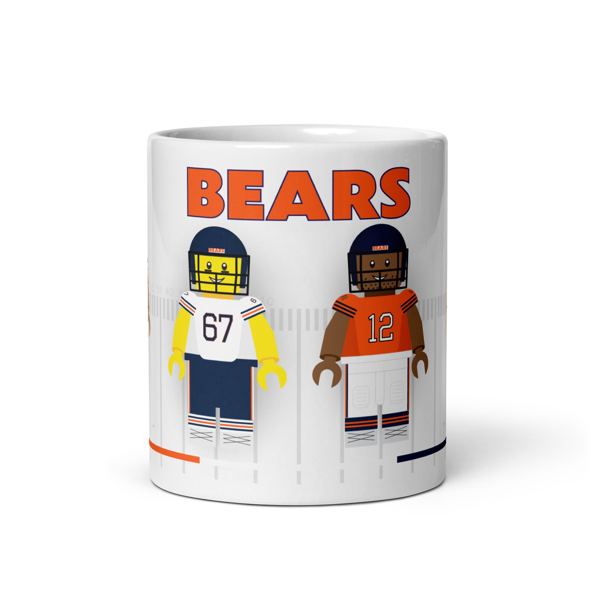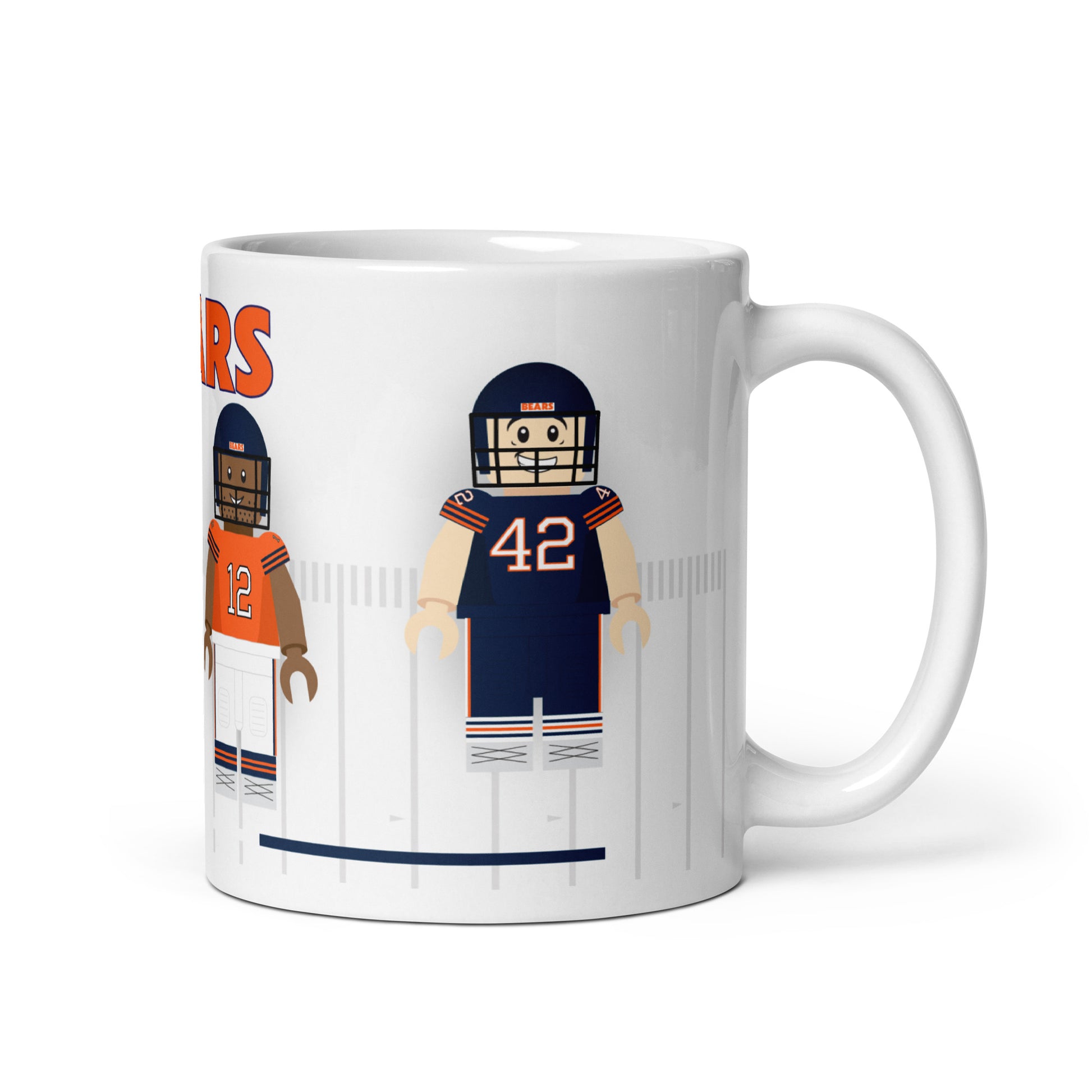 Bear down on your morning routine with our Chicago Bears Mug! Crafted with the precision of a perfectly executed blitz, this ceramic wonder features four Bears players in their iconic navy blue and orange kits, all depicted in playful building block-inspired illustrations. It's like having a mini pep rally with every sip! So, whether you're gearing up for a chilly game day at Soldier Field or simply need a boost, let this mug be your go-to choice for adding a touch of Bears pride to your morning routine.