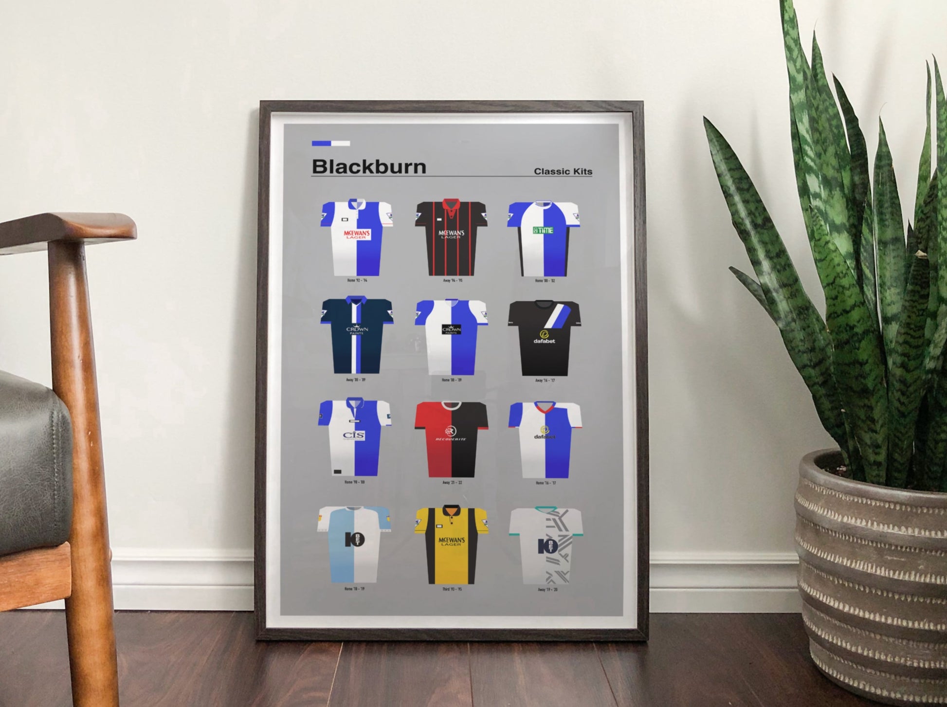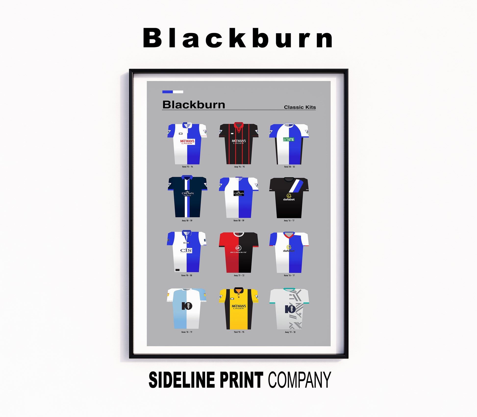 Blackburn Rovers Classic Kits Art Print Relive the unforgettable moments of Blackburn Rovers with our iconic kits art print. From the championship-winning designs of the 1990s to the sleek modern jerseys of today, this tribute print pays homage to Ewood Park's storied history. Whether you're a Rovers fanatic or simply love the beauty of football jerseys, this artwork is a must-have addition to your collection.