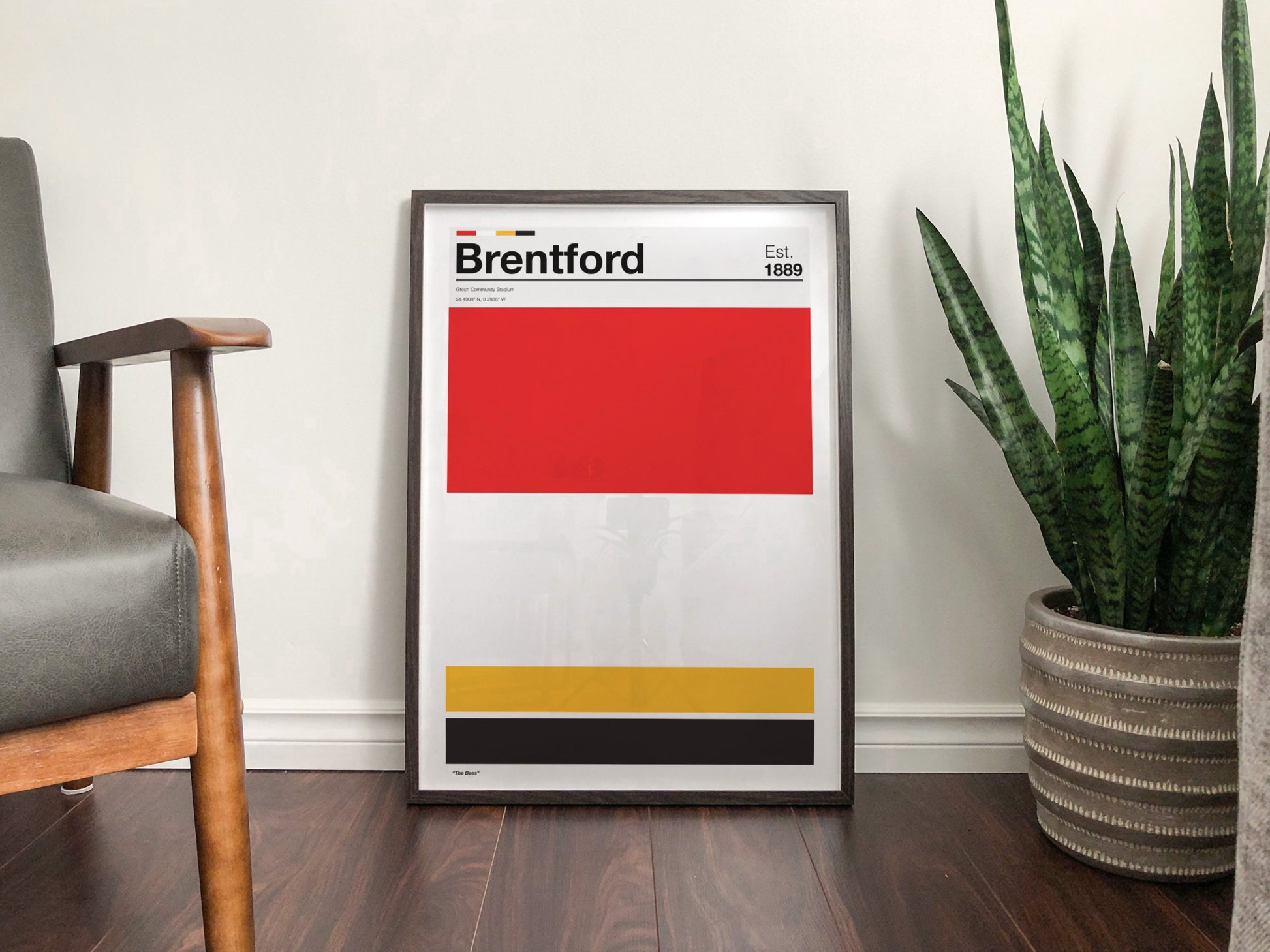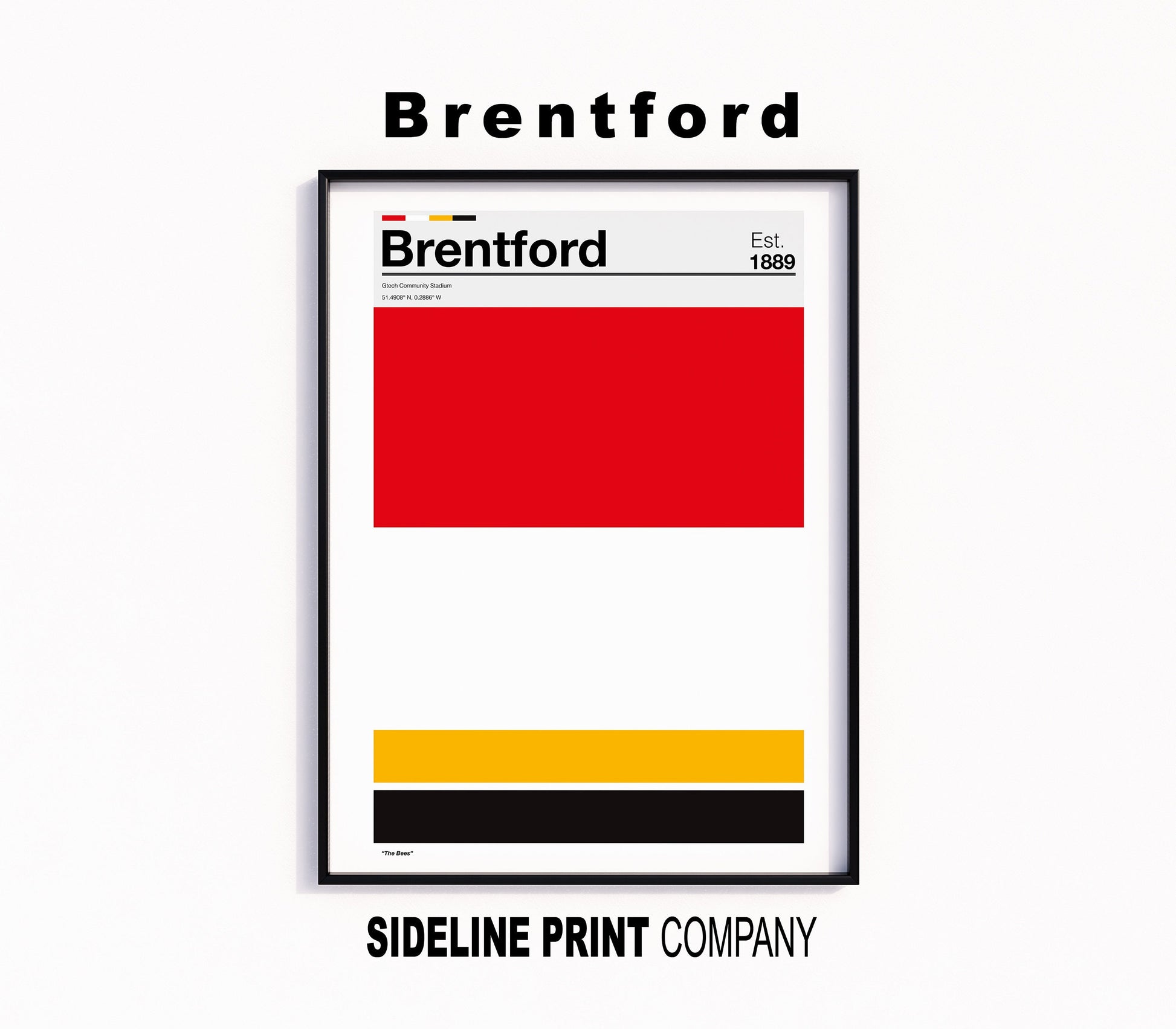 Celebrate the Bees with our Brentford football team colours art print. Displaying the red and white with pride in a contemporary style, this print is perfect for fans looking to show their support for the Brentford Community Stadium club.