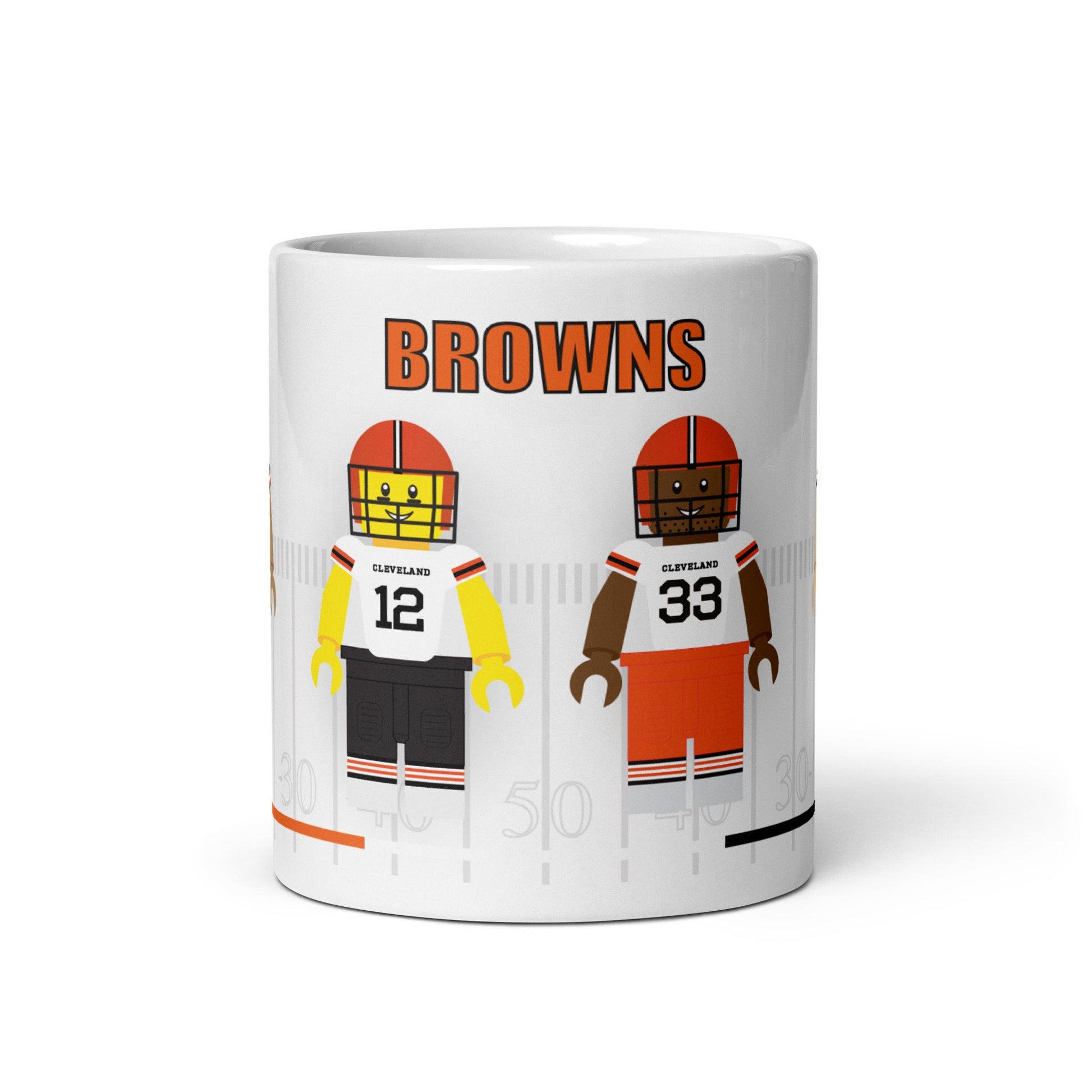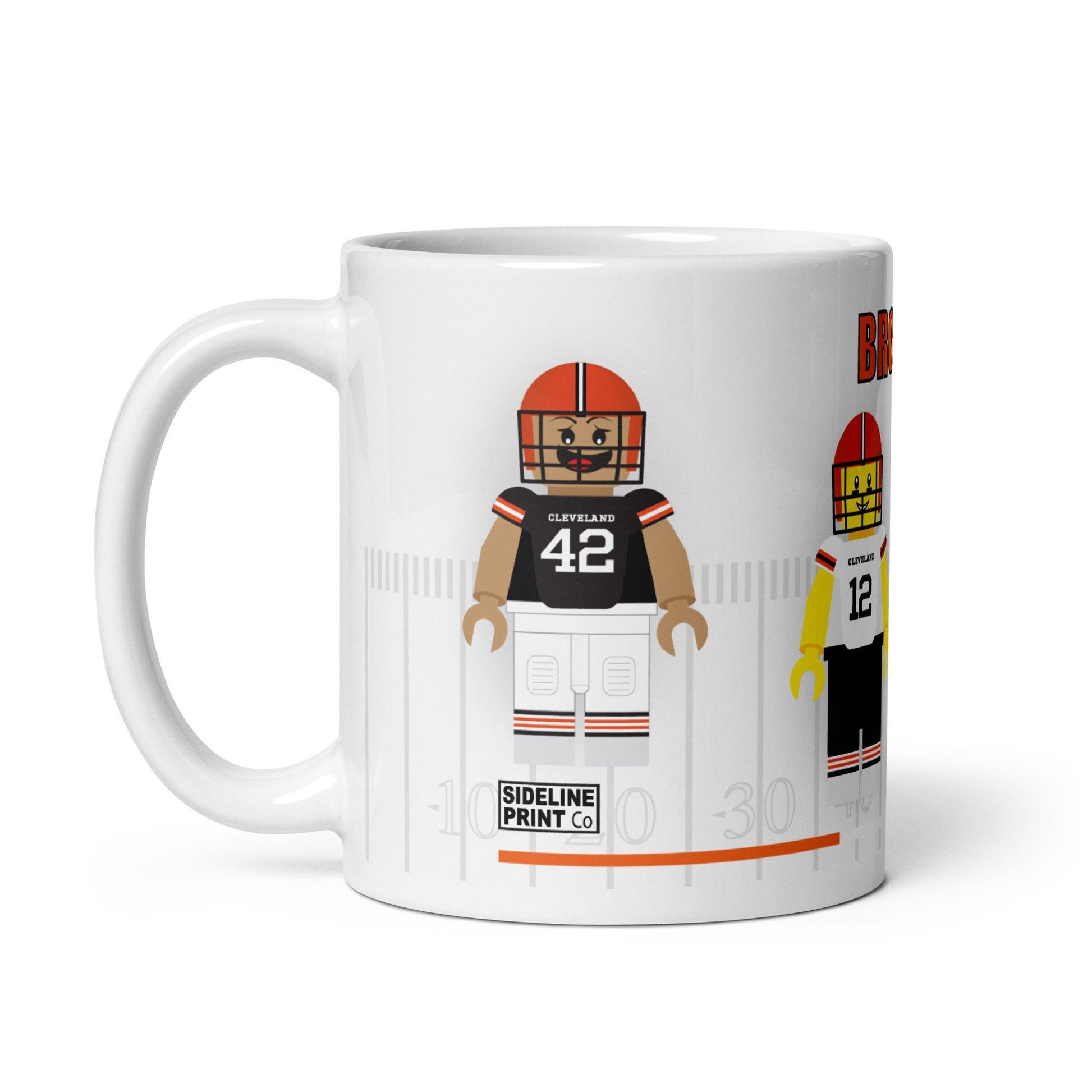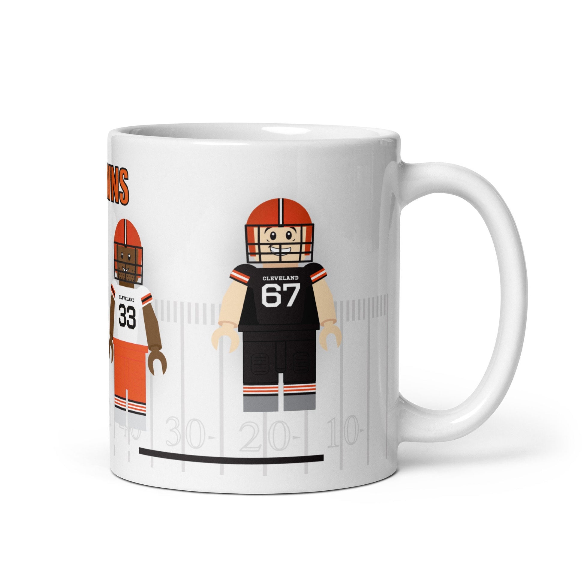 Elevate your morning routine with our Cleveland Browns Mug! Crafted from premium ceramic, this mug showcases four dynamic Browns players in their iconic home and away kits, depicted in captivating Building block-inspired illustrations. Start your day off right with a smile as you sip your favourite beverage from this charming mug, perfect for any Browns fan looking to add a touch of team spirit to their drink-ware collection.