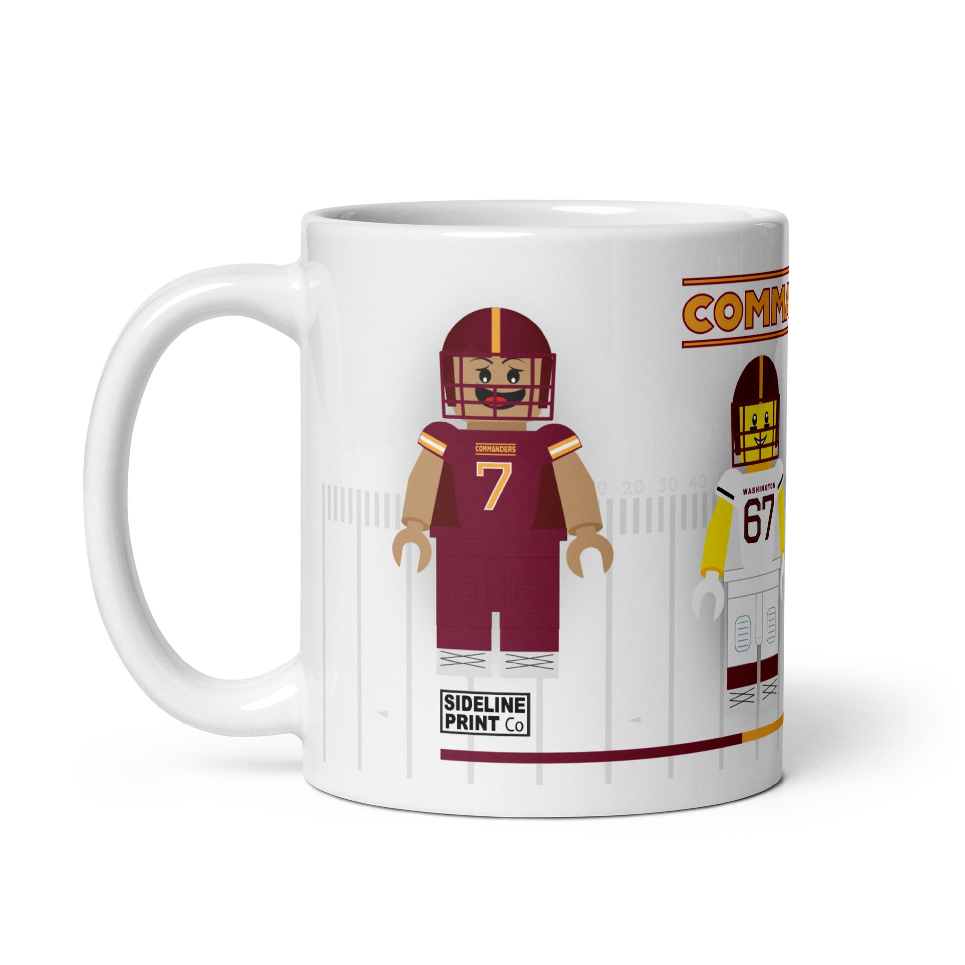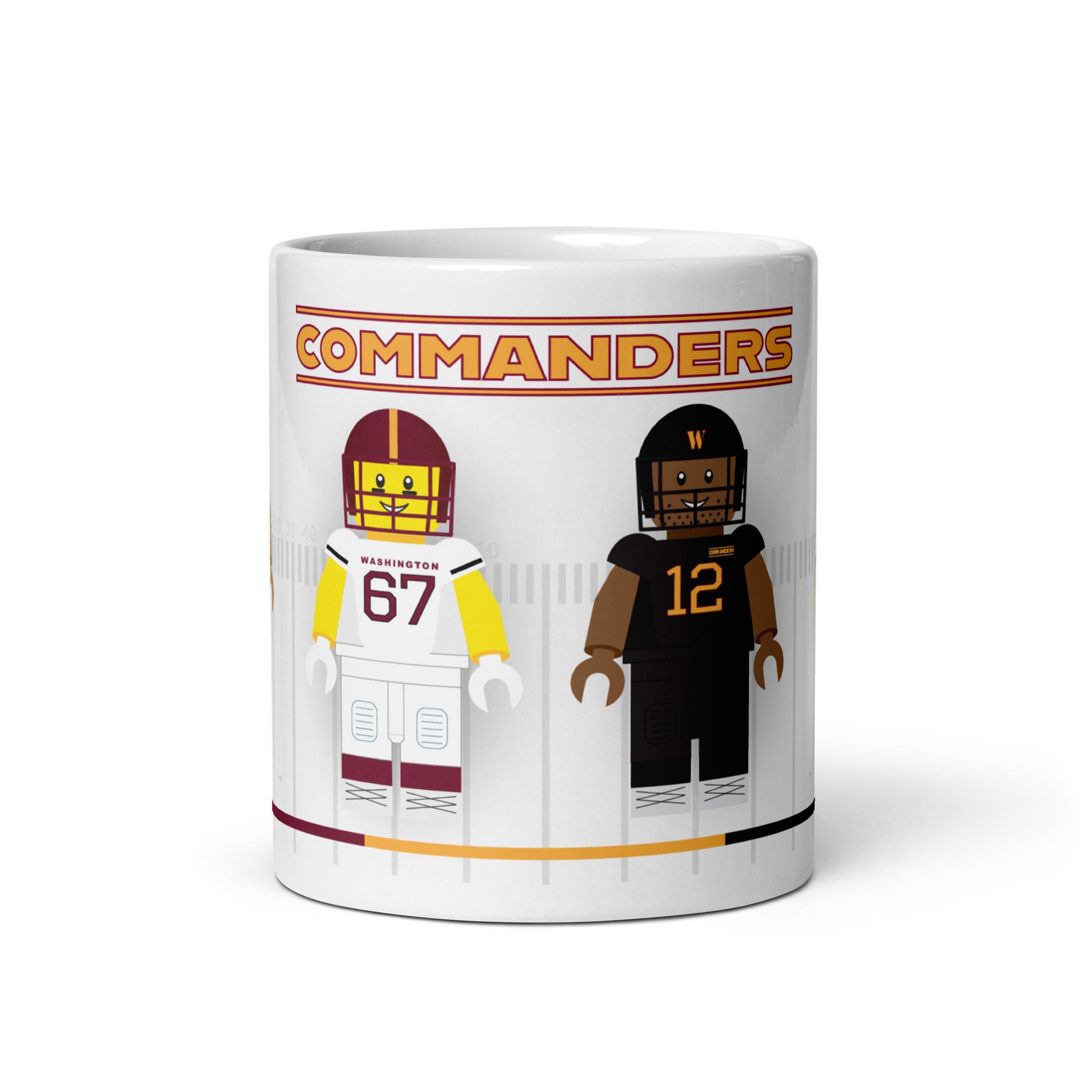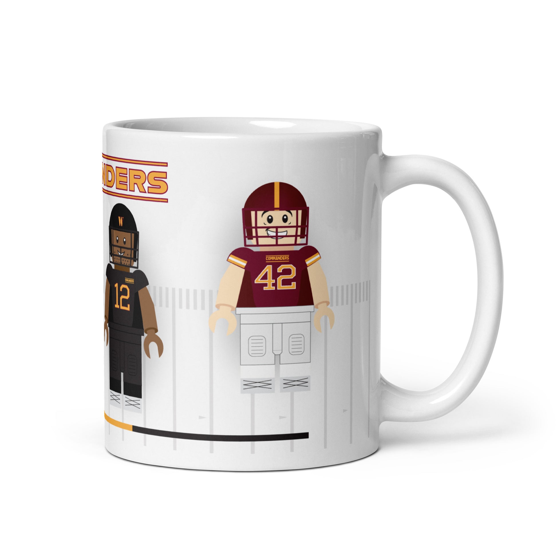 Gear up and hail to the football team with our Washington Commanders Mug! Crafted with the precision of a perfectly executed two-minute drill, this ceramic marvel features four Commanders players in their iconic burgundy and gold kits, all depicted in playful building block-inspired illustrations. It's like having a mini game day rally with every sip! So, whether you're strategising for victory or simply need a boost, let this mug be your go-to choice for adding a touch of Commanders pride to your morning routine.