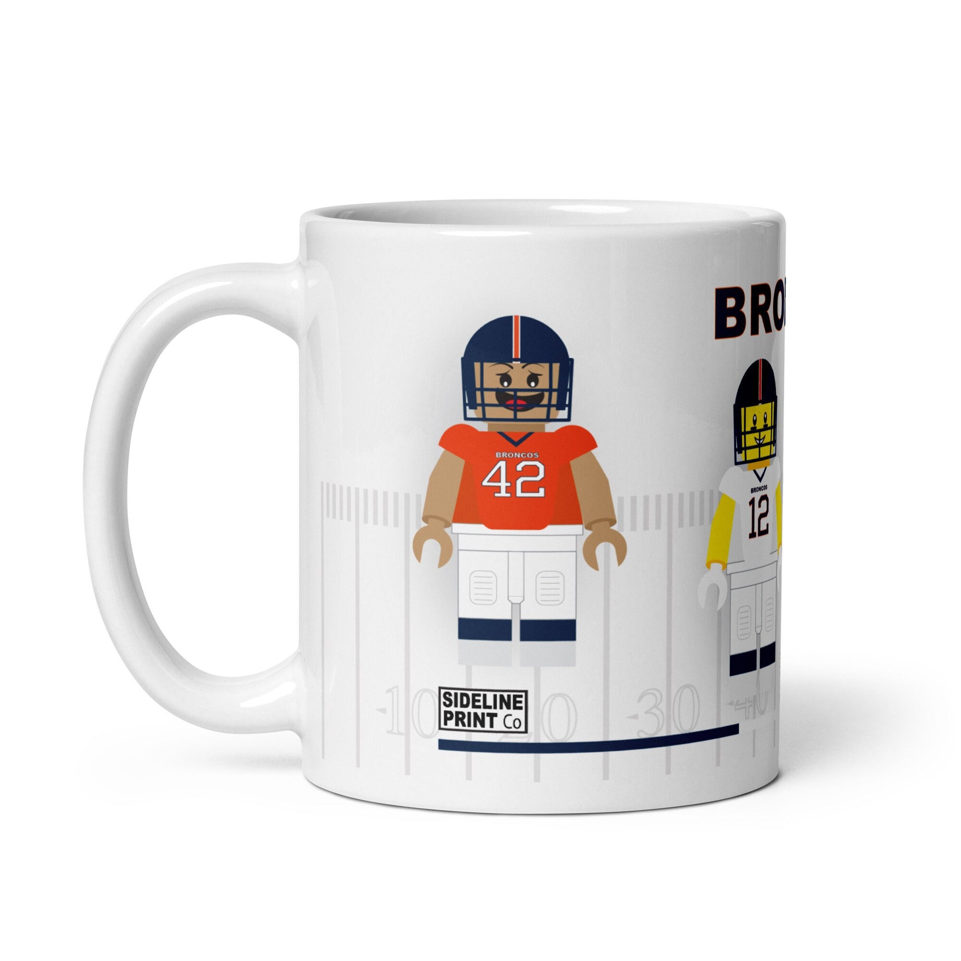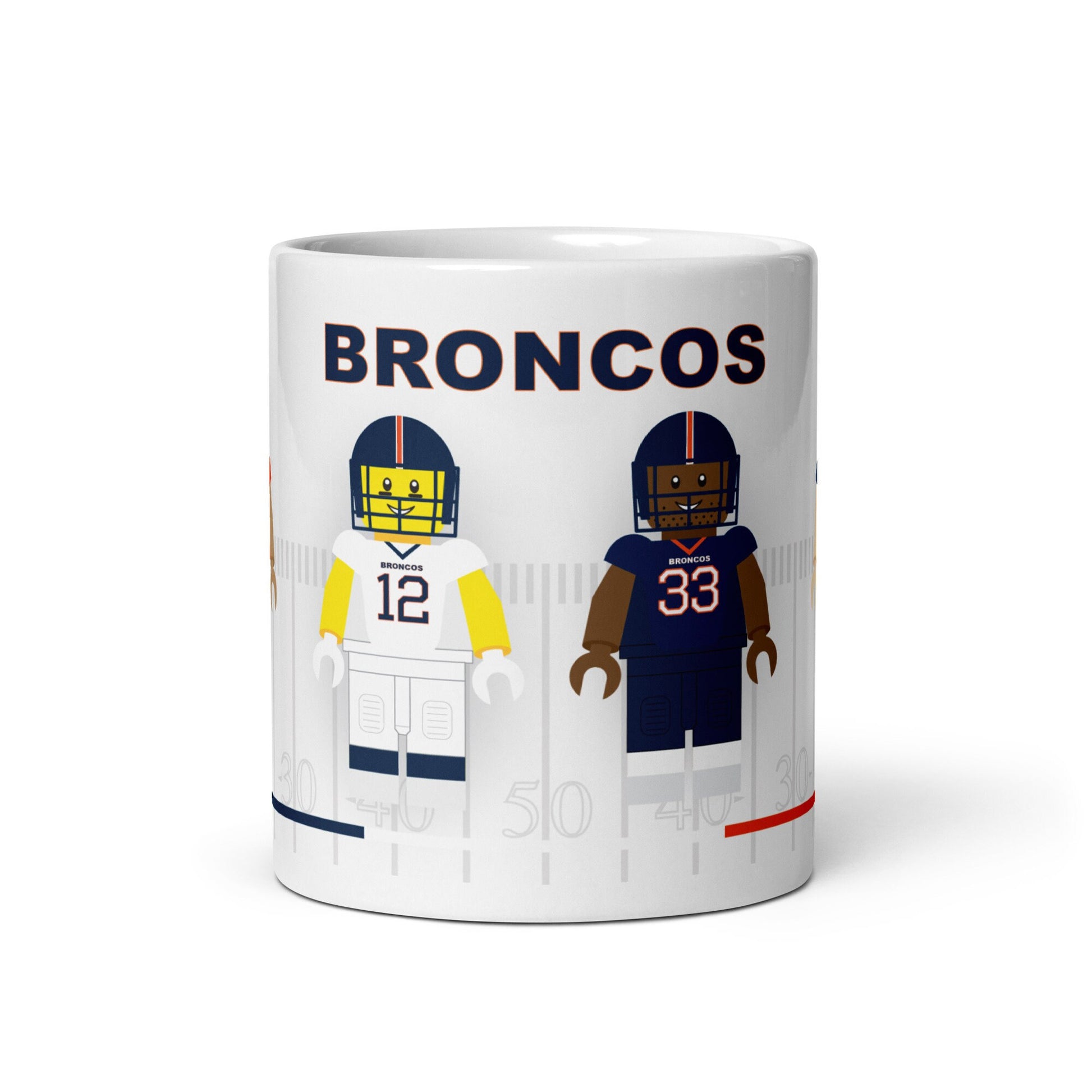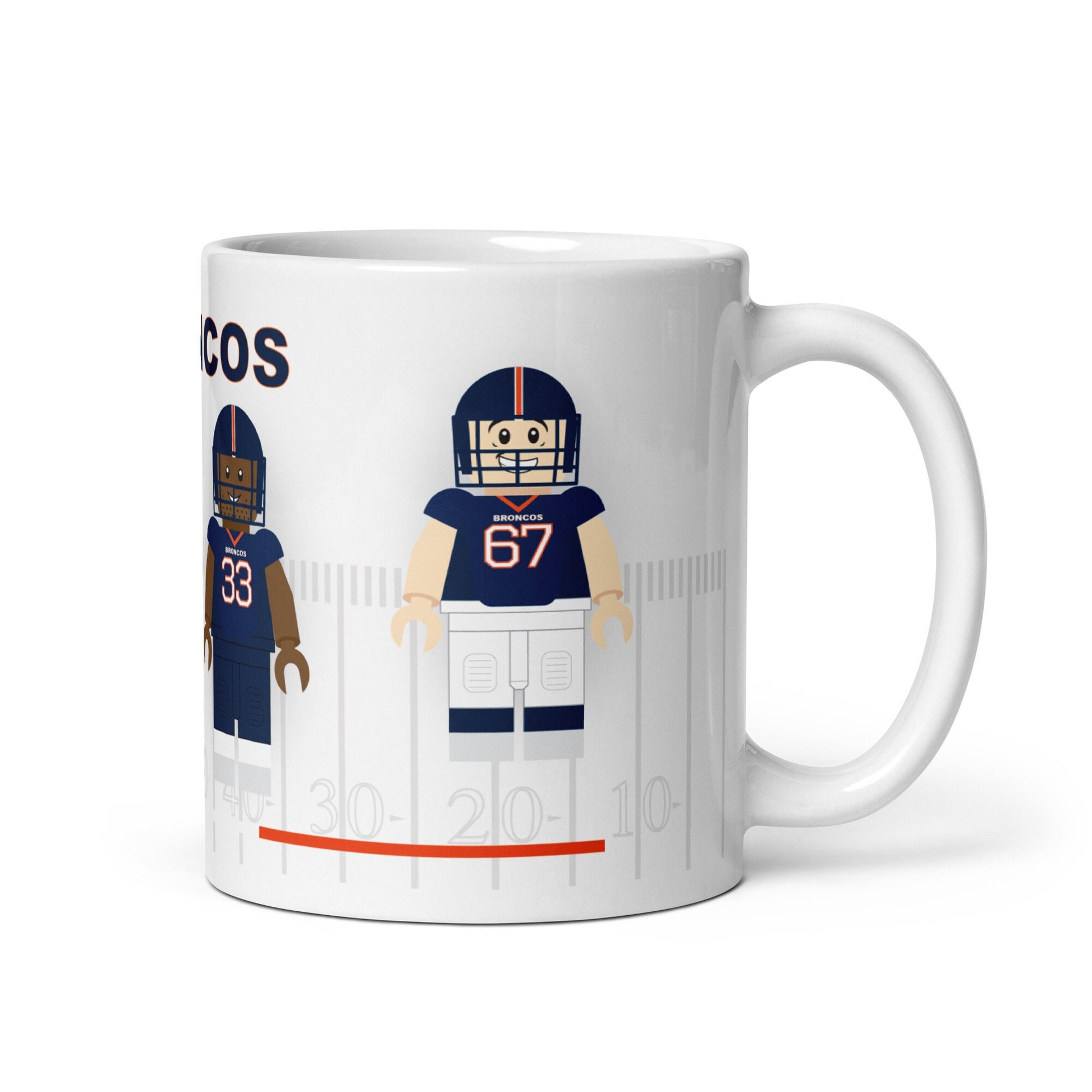 Calling all Broncos enthusiasts! Behold the mug that's about to become the MVP (Most Valuable Pint-holder) of your collection – our Denver Broncos Mug! Crafted with the precision of a game-winning field goal, this ceramic masterpiece features four Broncos players striking heroic poses in their legendary orange and blue kits. And guess what? No timeouts needed to appreciate the playful building block-inspired illustrations that'll make you grin like you just scored a touchdown. So, whether you're enjoying a morning brew or a post-game victory drink, let this mug be your trusty sidekick on the road to gridiron glory!