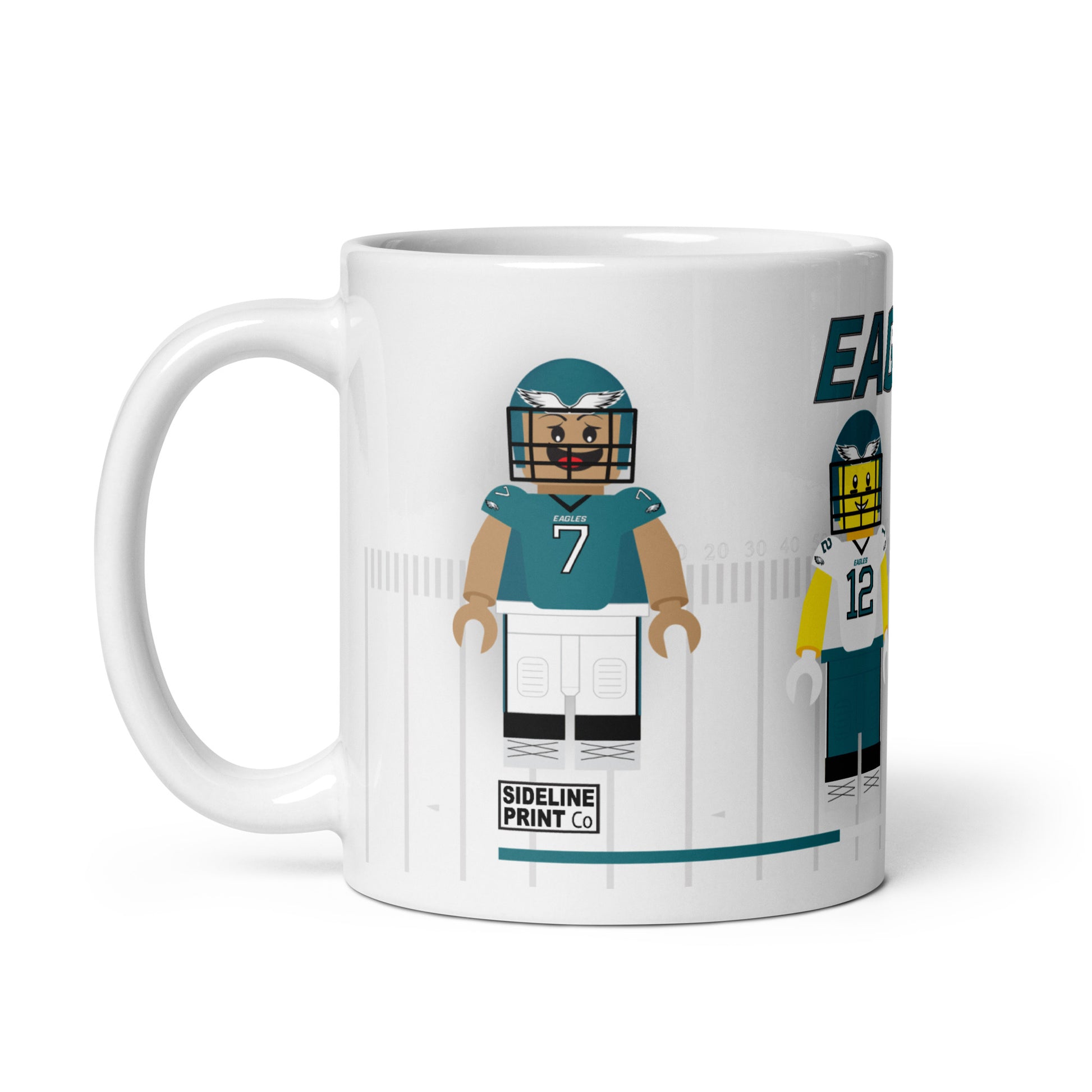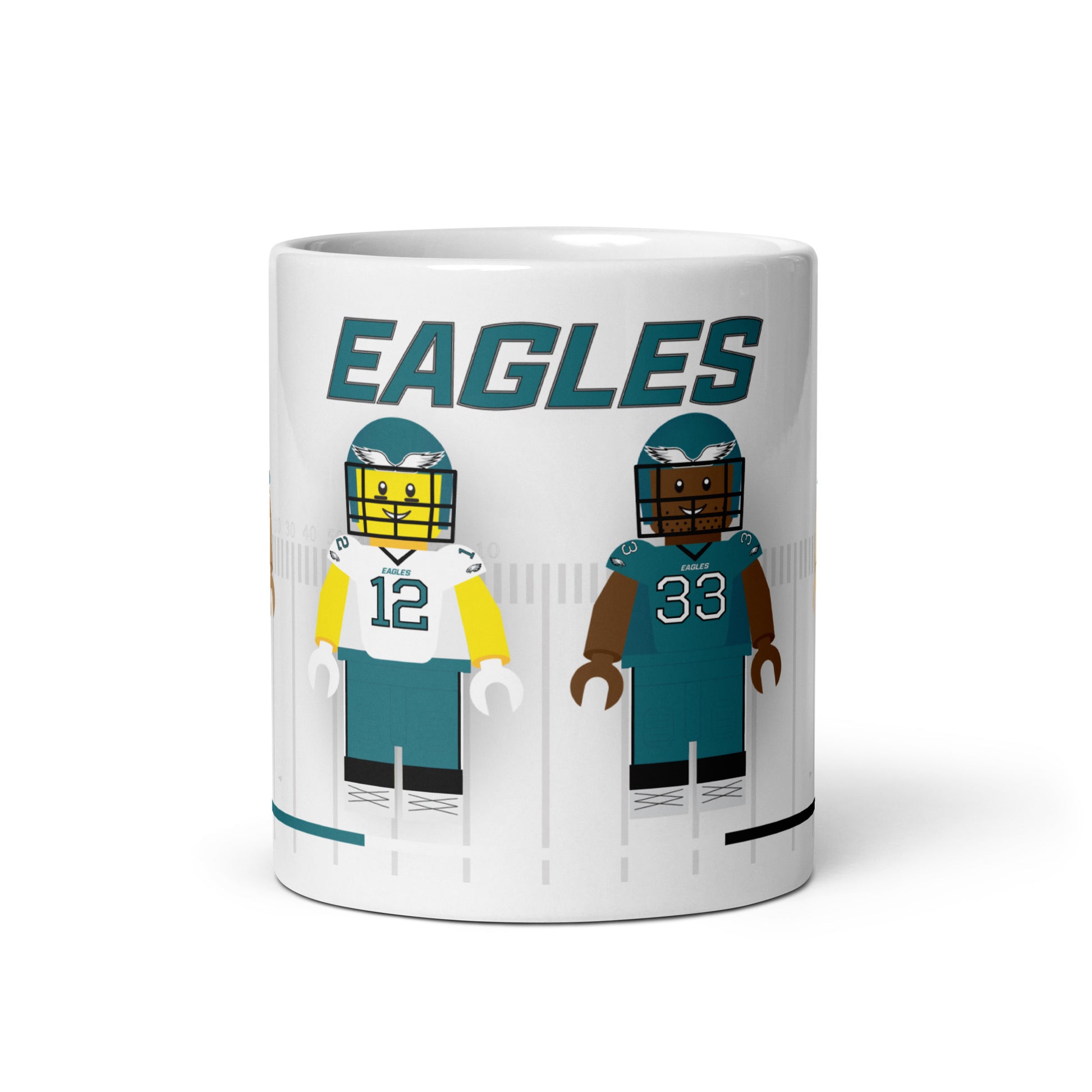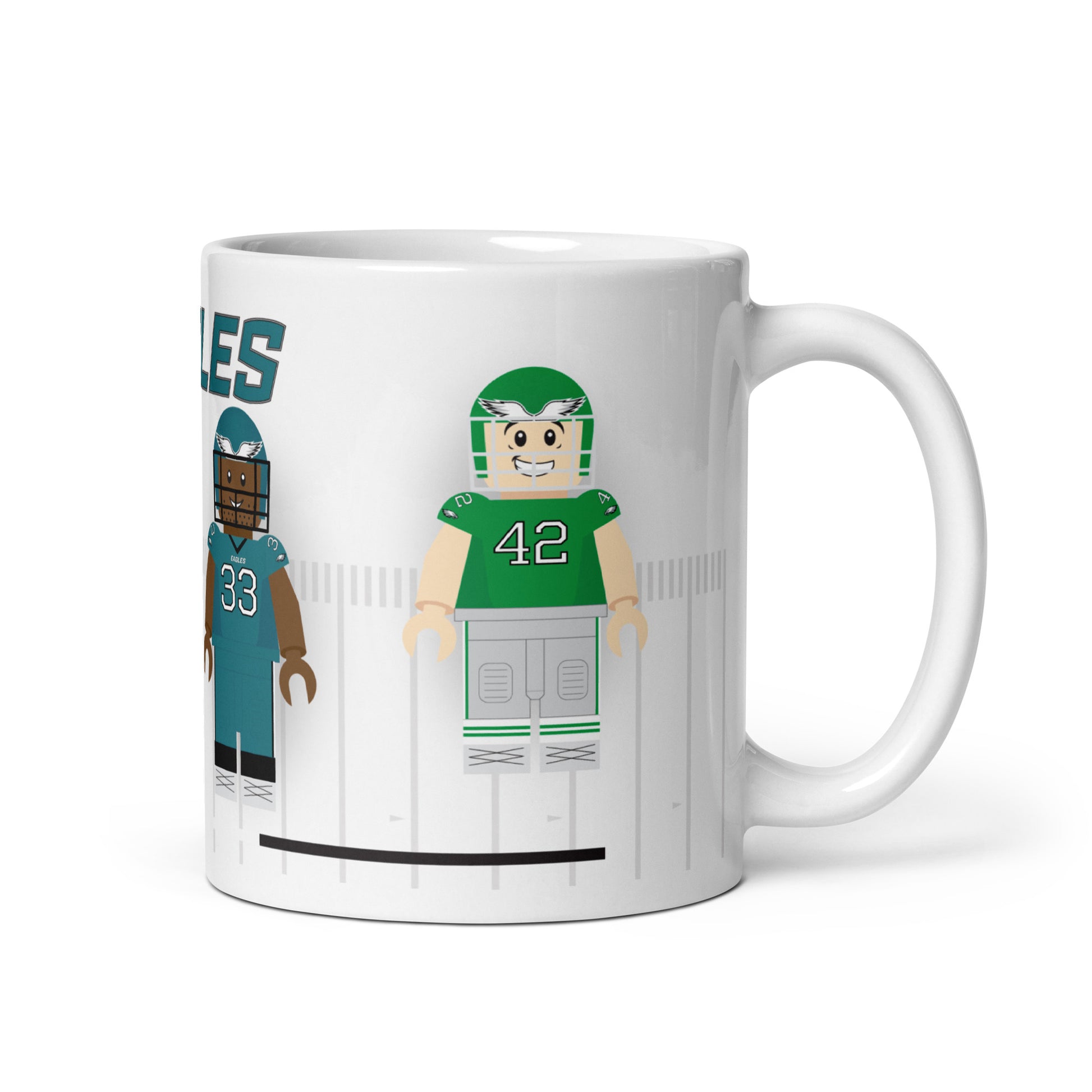 Soar into your day with our Philadelphia Eagles Mug! Crafted with the precision of a perfectly executed fourth-down conversion, this ceramic marvel features four Eagles players in their iconic midnight green and silver kits, all depicted in playful building block-inspired illustrations. It's like having a mini tailgate party with every sip! So, whether you're preparing to fly high on game day or simply need a boost, let this mug be your go-to choice for adding a touch of Eagles pride to your morning routine.