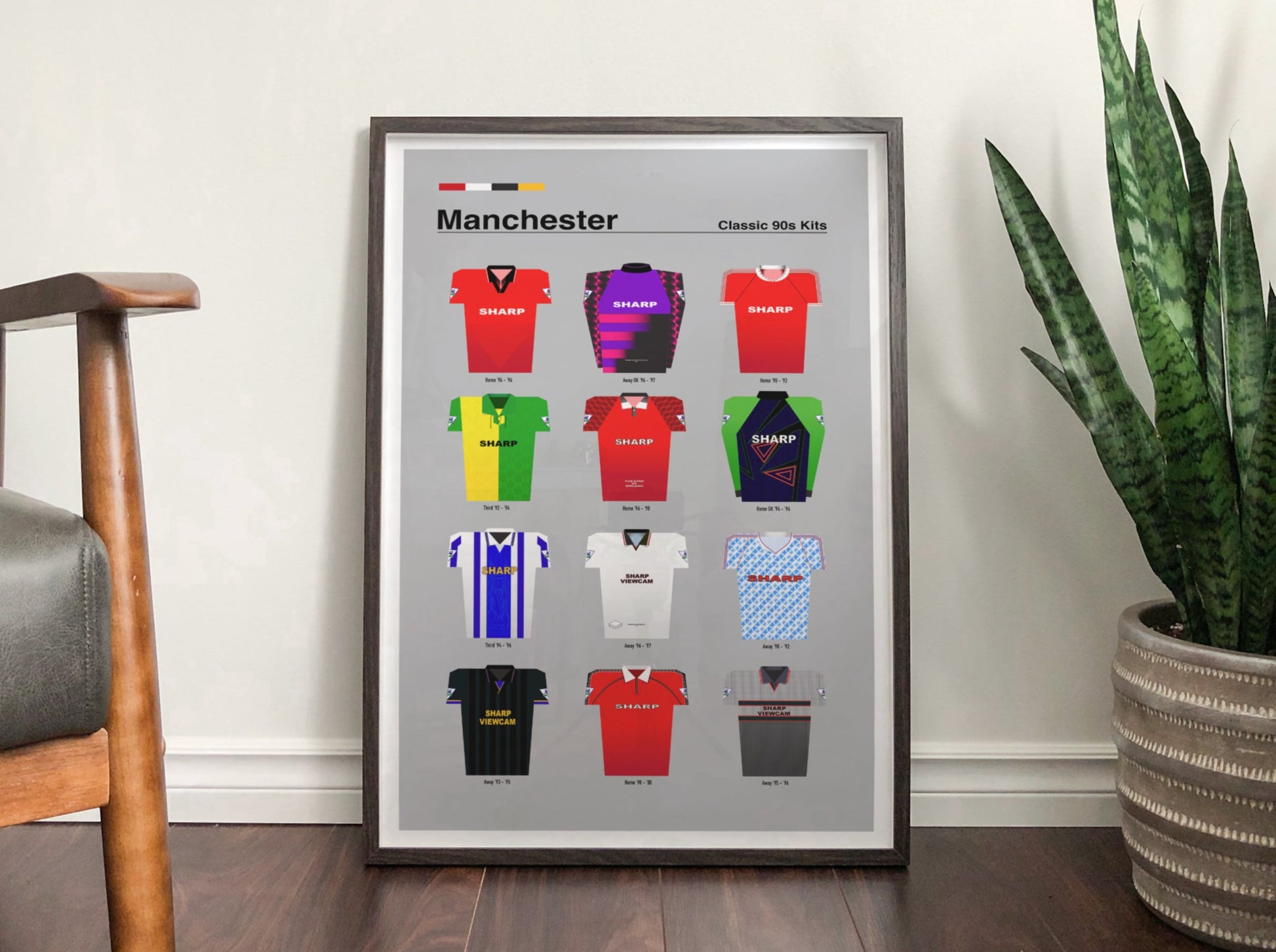 Manchester United Football Club - Classic 90's Kits - Retro Football Shirts Art Print