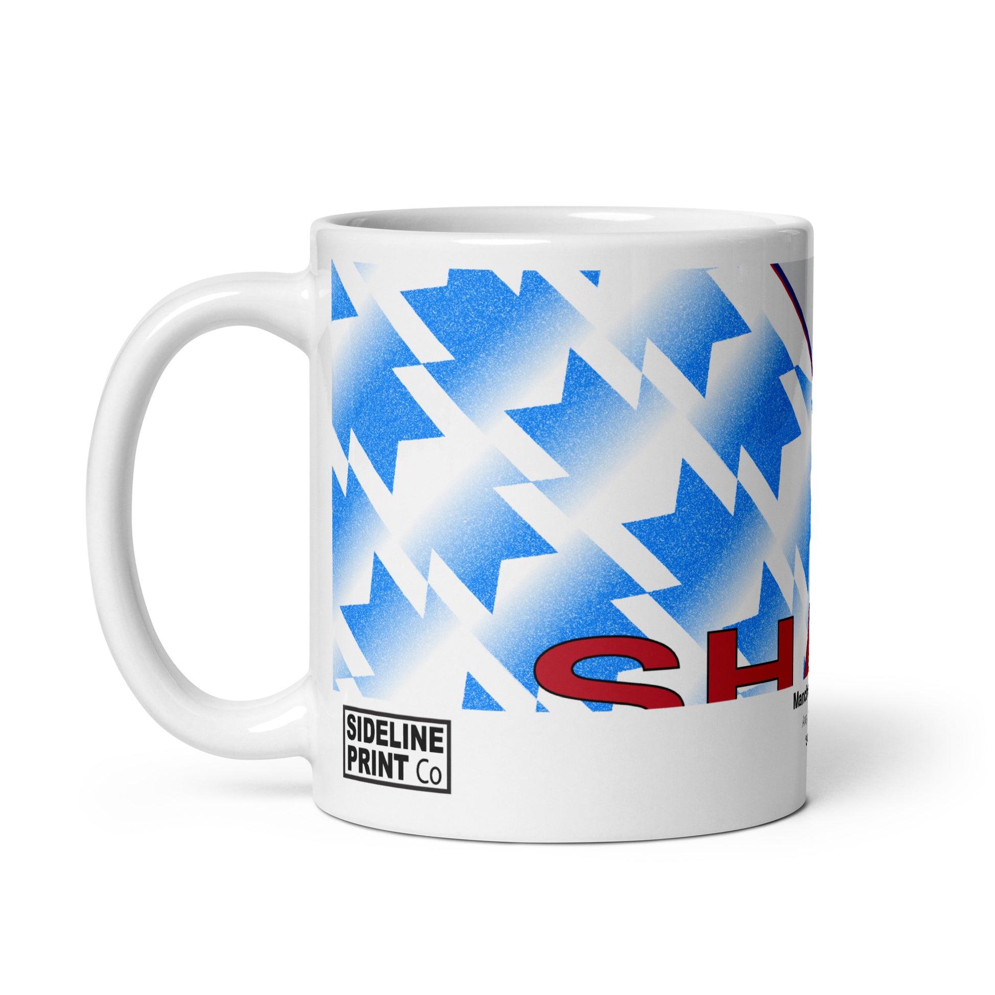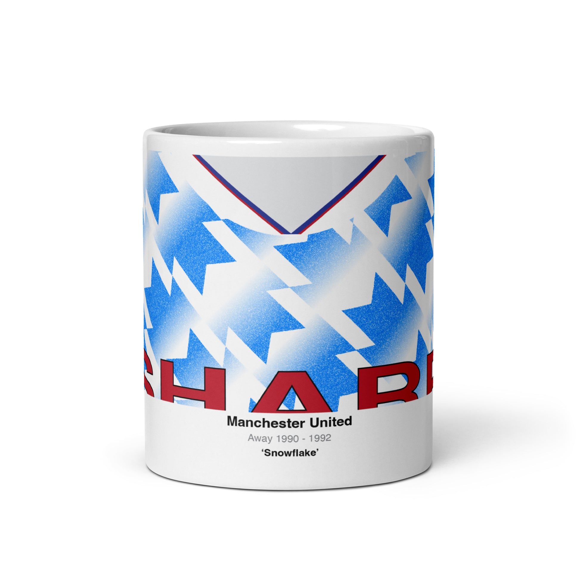 Hey, Man United fans! Add some frosty flair to your morning routine with our Manchester United Snowflake Away Kit Mug, inspired by the eye-catching snowflake design from the early 90's. This mug is as stylish as Bruno Fernandes' penalties and holds enough brew to get you through those frosty Europa League nights. Microwave and dishwasher safe, it's the perfect gift for any Red Devils supporter. Order yours today and raise a toast to United's cool away days. Cheers to the Red Devils!