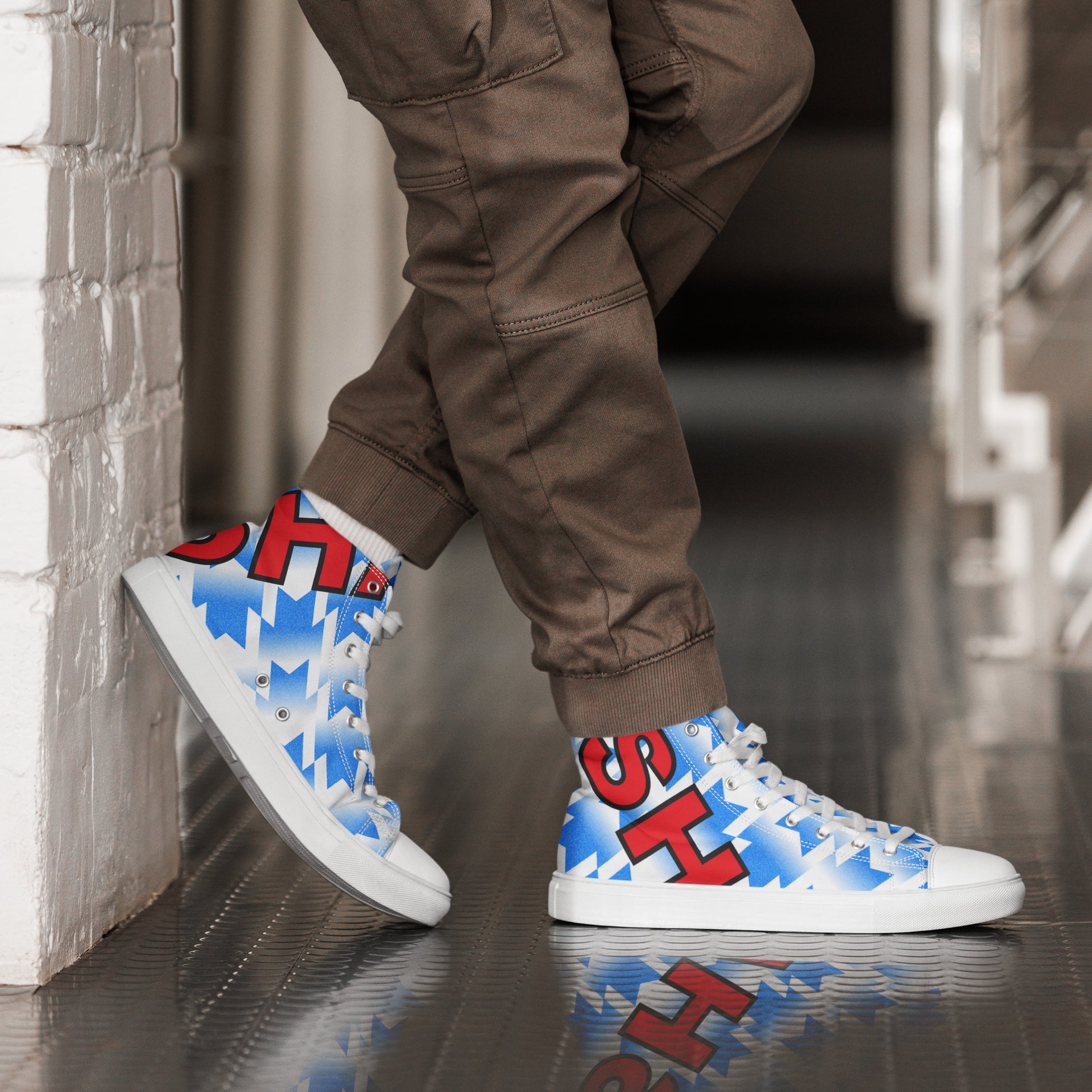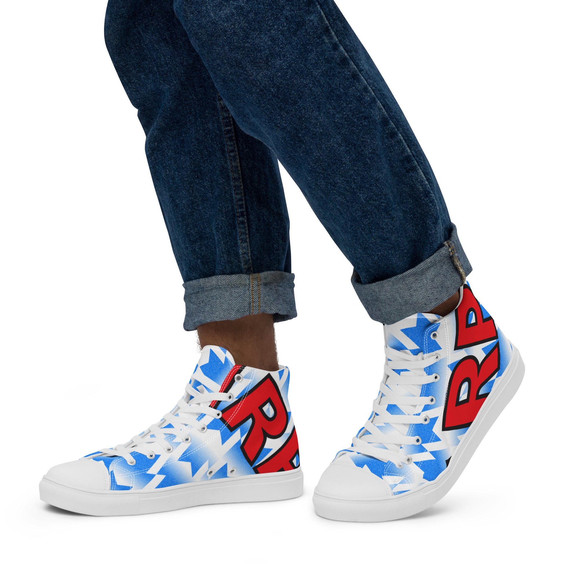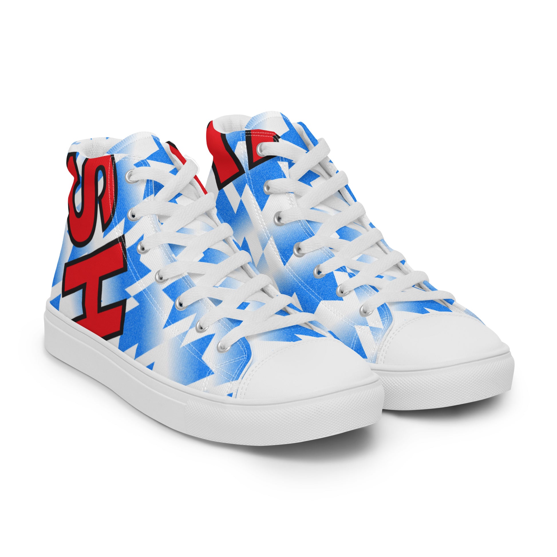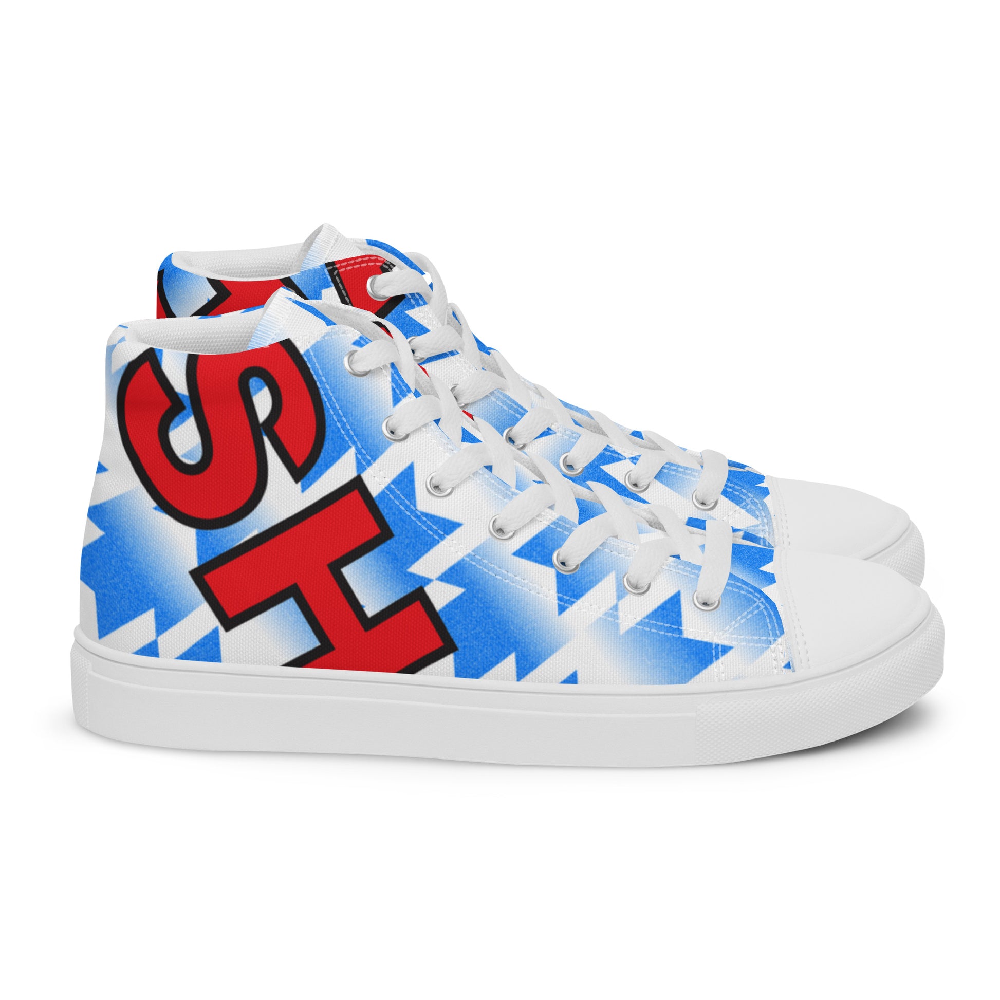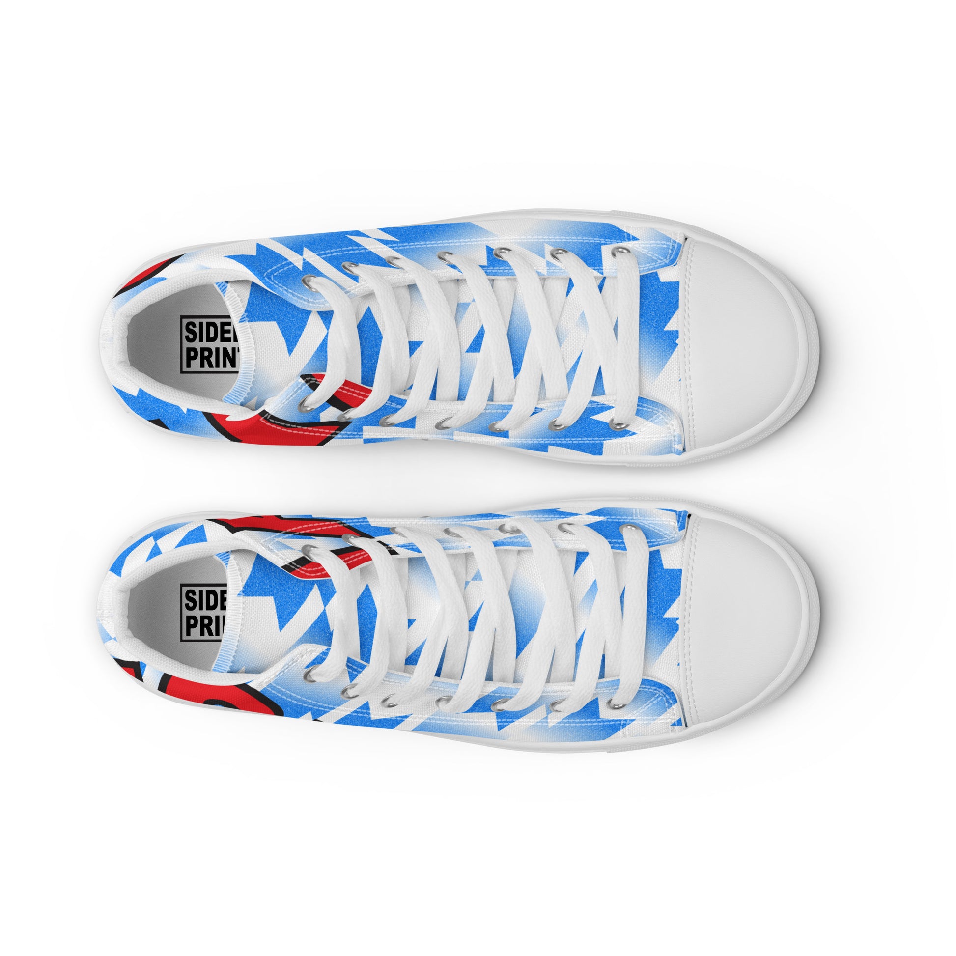 Step out in style and pay homage to football history with our Manchester United 'Snowflake' inspired high top canvas shoes. These shoes are a vibrant tribute to the iconic Manchester United kit from the early '90s, famously known for its distinctive 'snowflake' pattern.