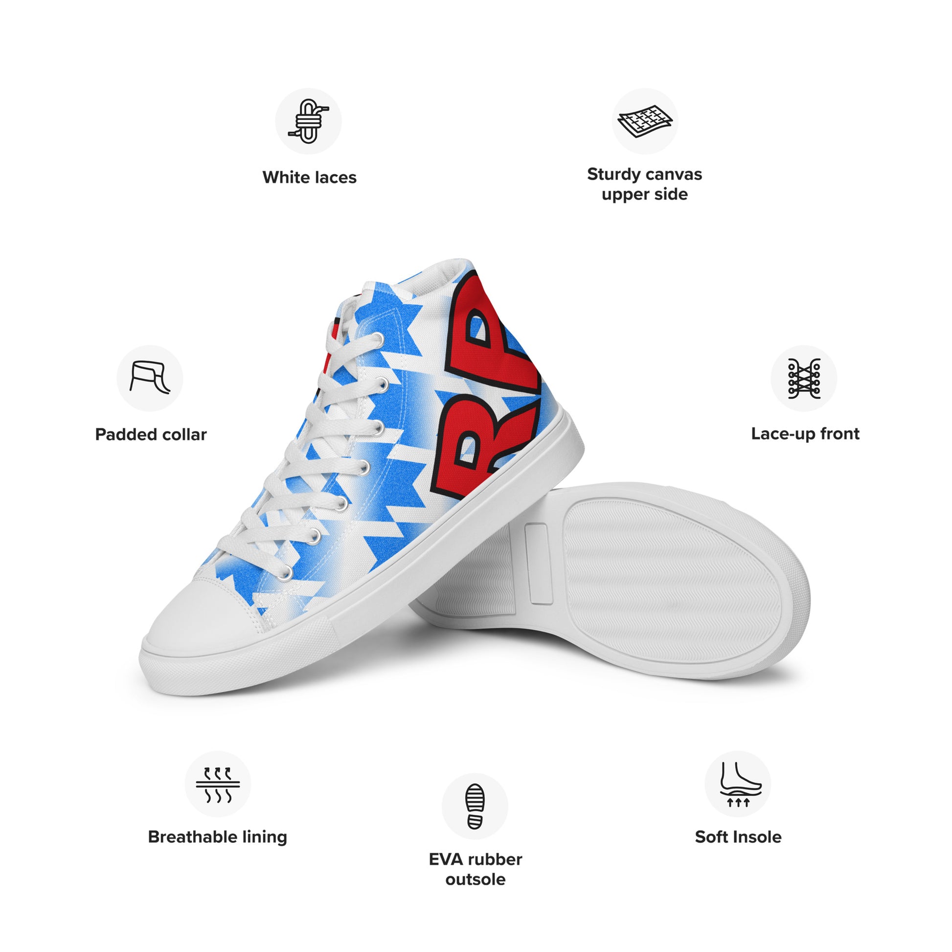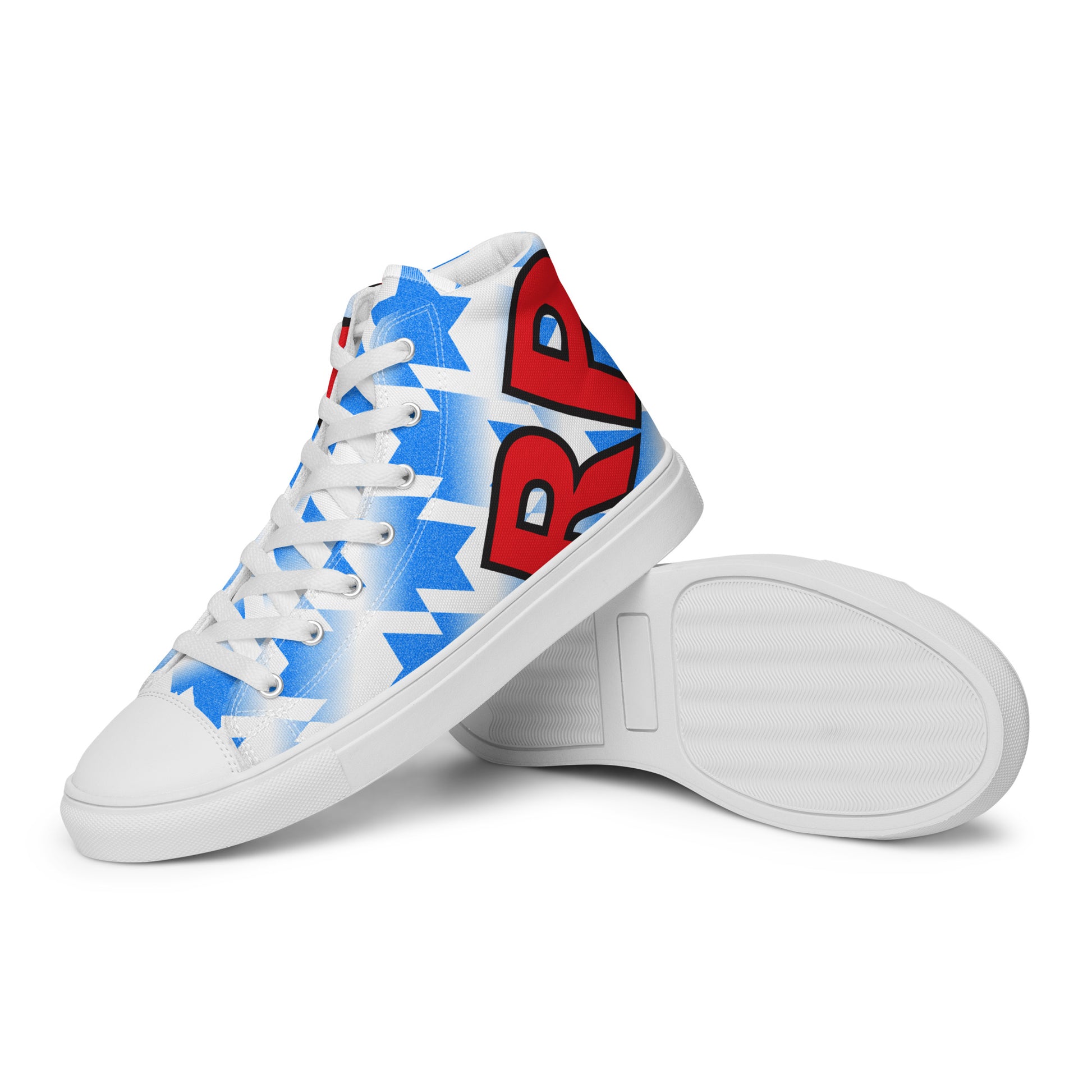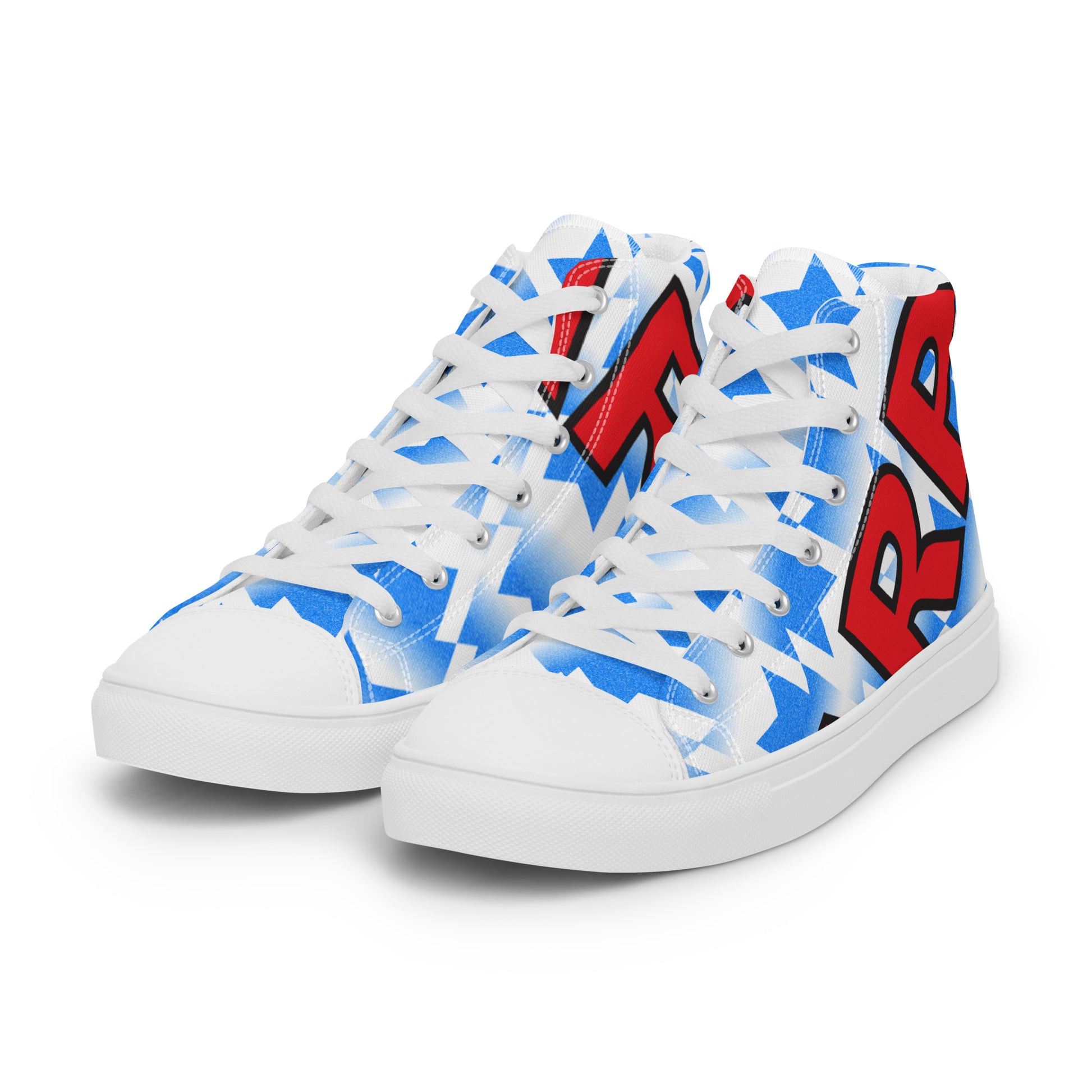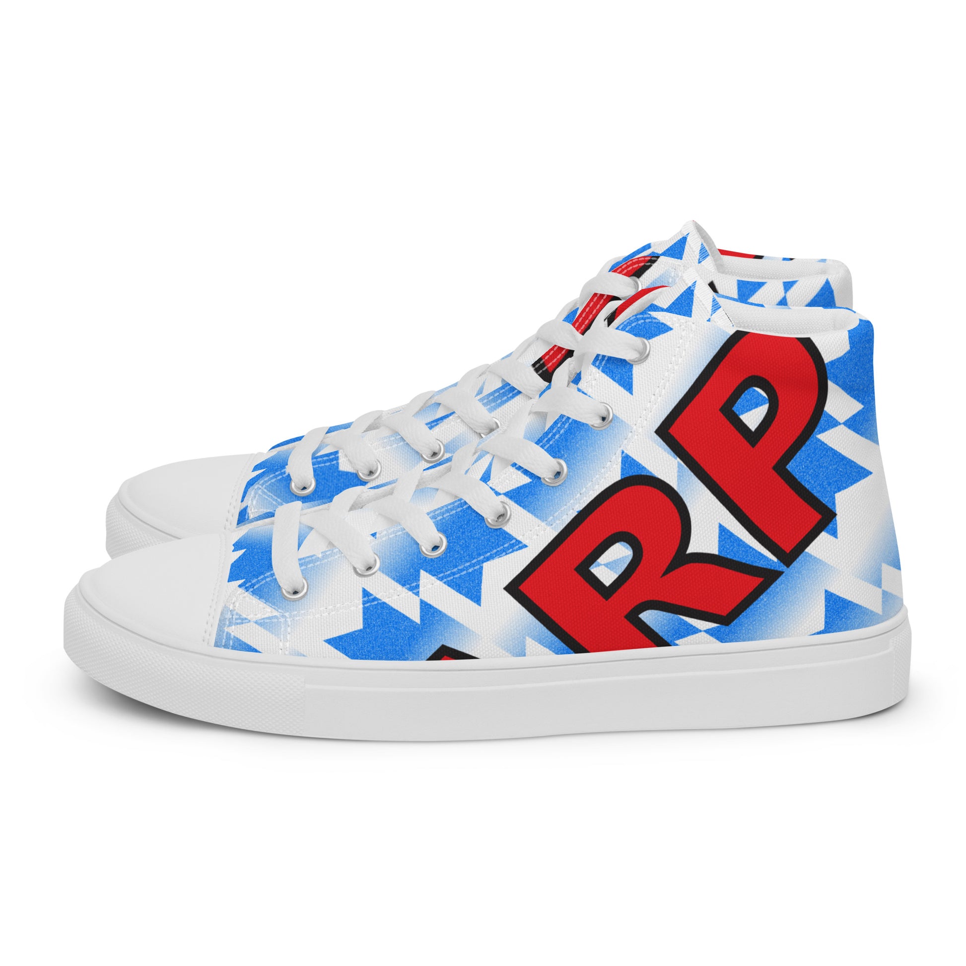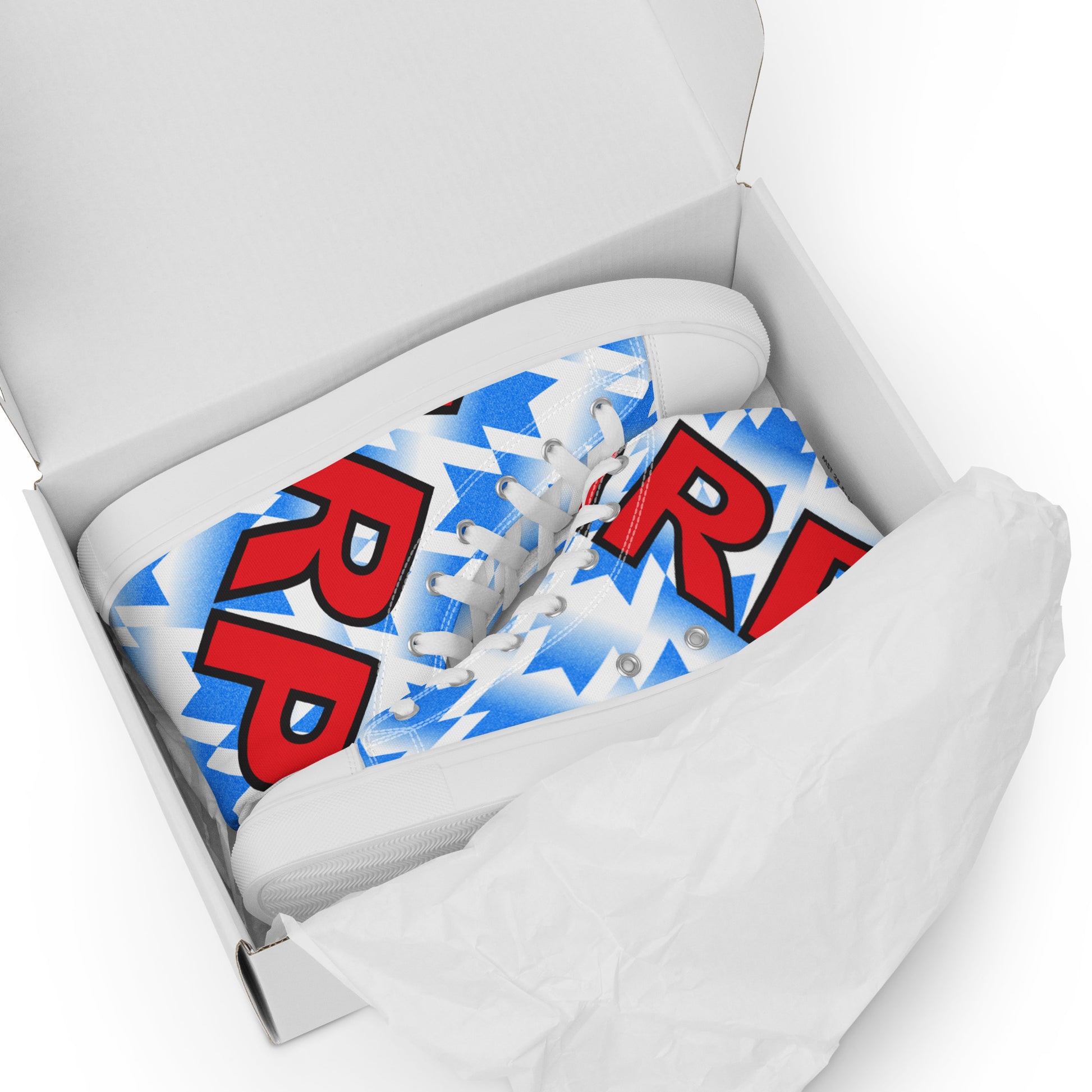 Step out in style and pay homage to football history with our Manchester United 'Snowflake' inspired high top canvas shoes. These shoes are a vibrant tribute to the iconic Manchester United kit from the early '90s, famously known for its distinctive 'snowflake' pattern.