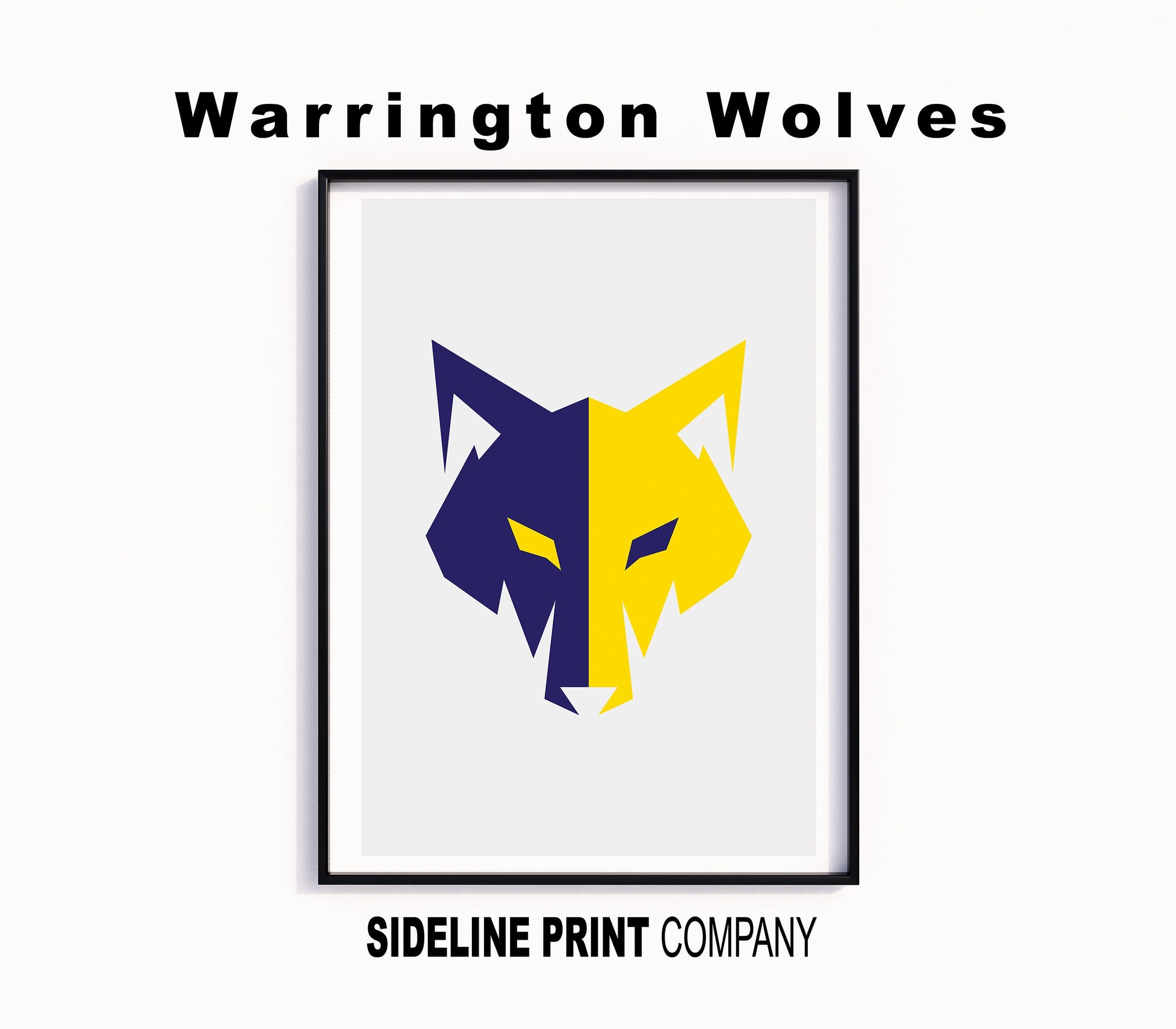 Warrington Wolves design featuring a yellow and blue wolf graphic. A contemporary and stylish way of subtly supporting your favourite team.