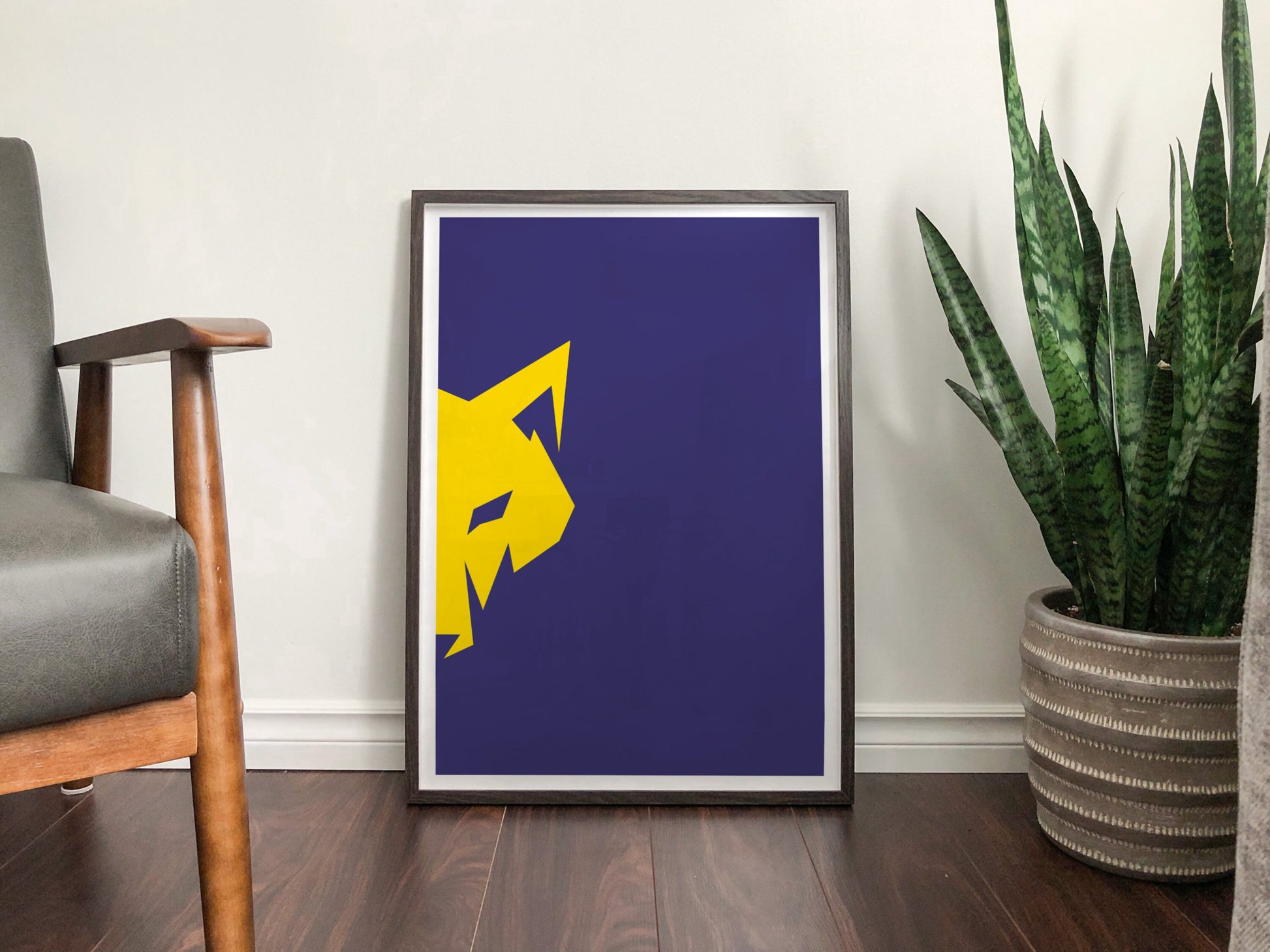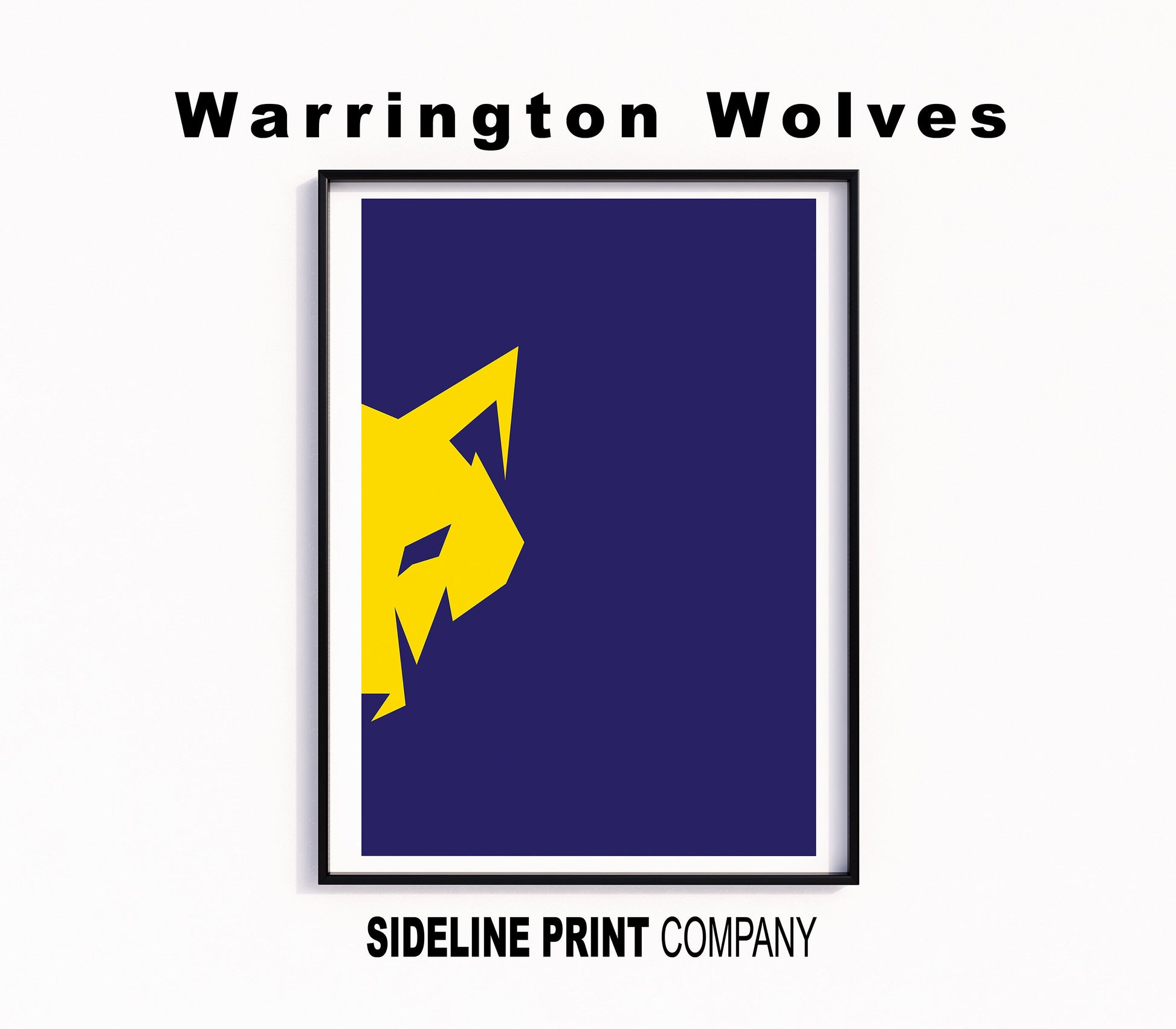 Warrington Wolves design featuring a yellow and blue wolf graphic. A contemporary and stylish way of subtly supporting your favourite team.