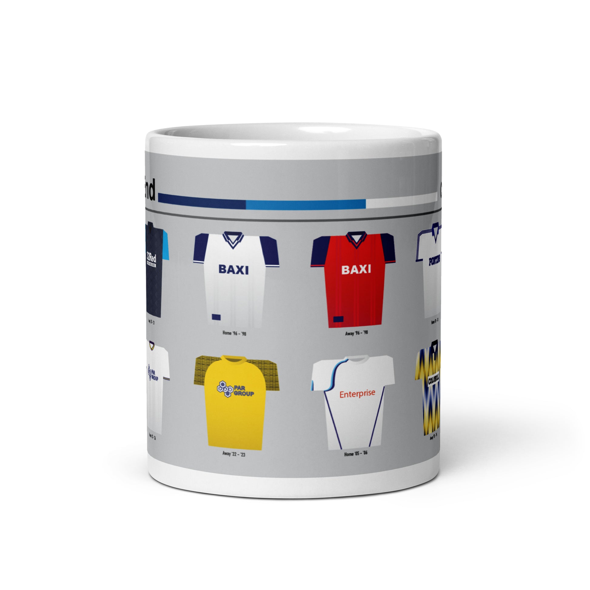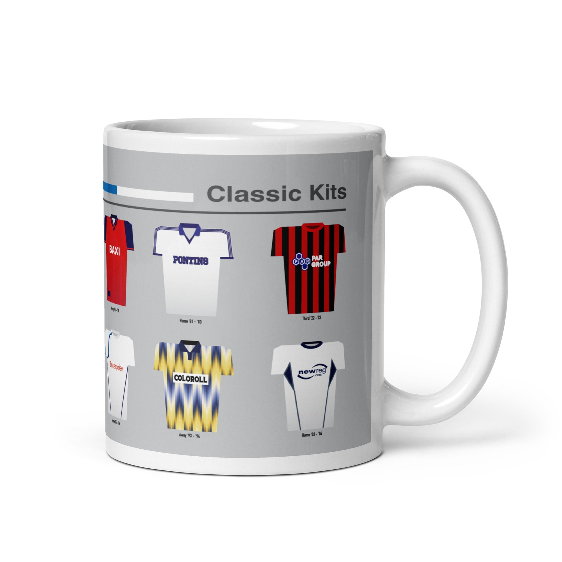 Savour your favourite beverage in our Preston North End Classic Kits Mug, highlighting the iconic jerseys from Deepdale's history. Crafted from durable, microwave, and dishwasher-safe ceramic, this 11oz mug is an essential for Lilywhites fans and football enthusiasts. Its vibrant design celebrates Preston's rich footballing heritage, sparking conversations and stirring nostalgic memories with each sip, making it the perfect way to showcase your club pride at home or in the office.
