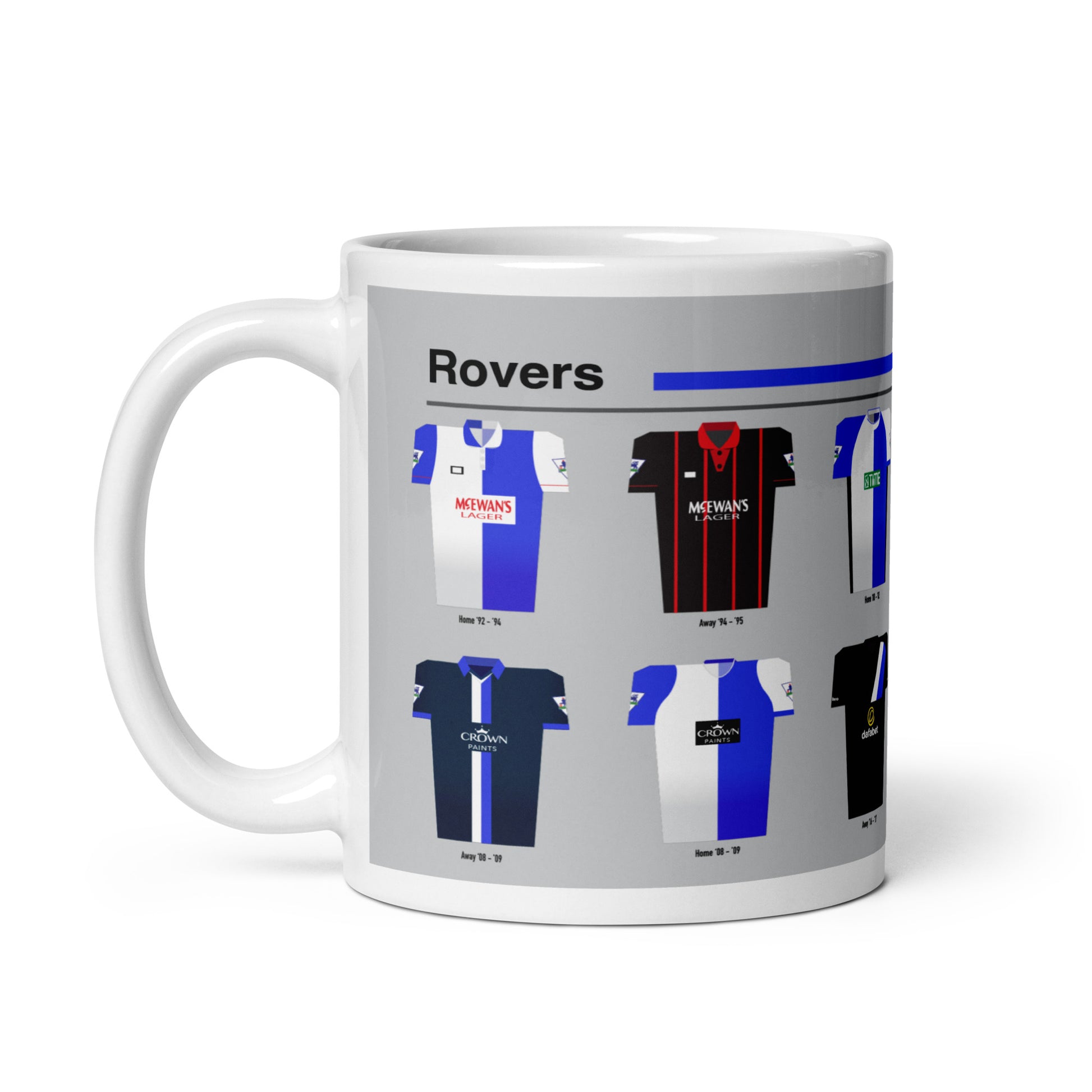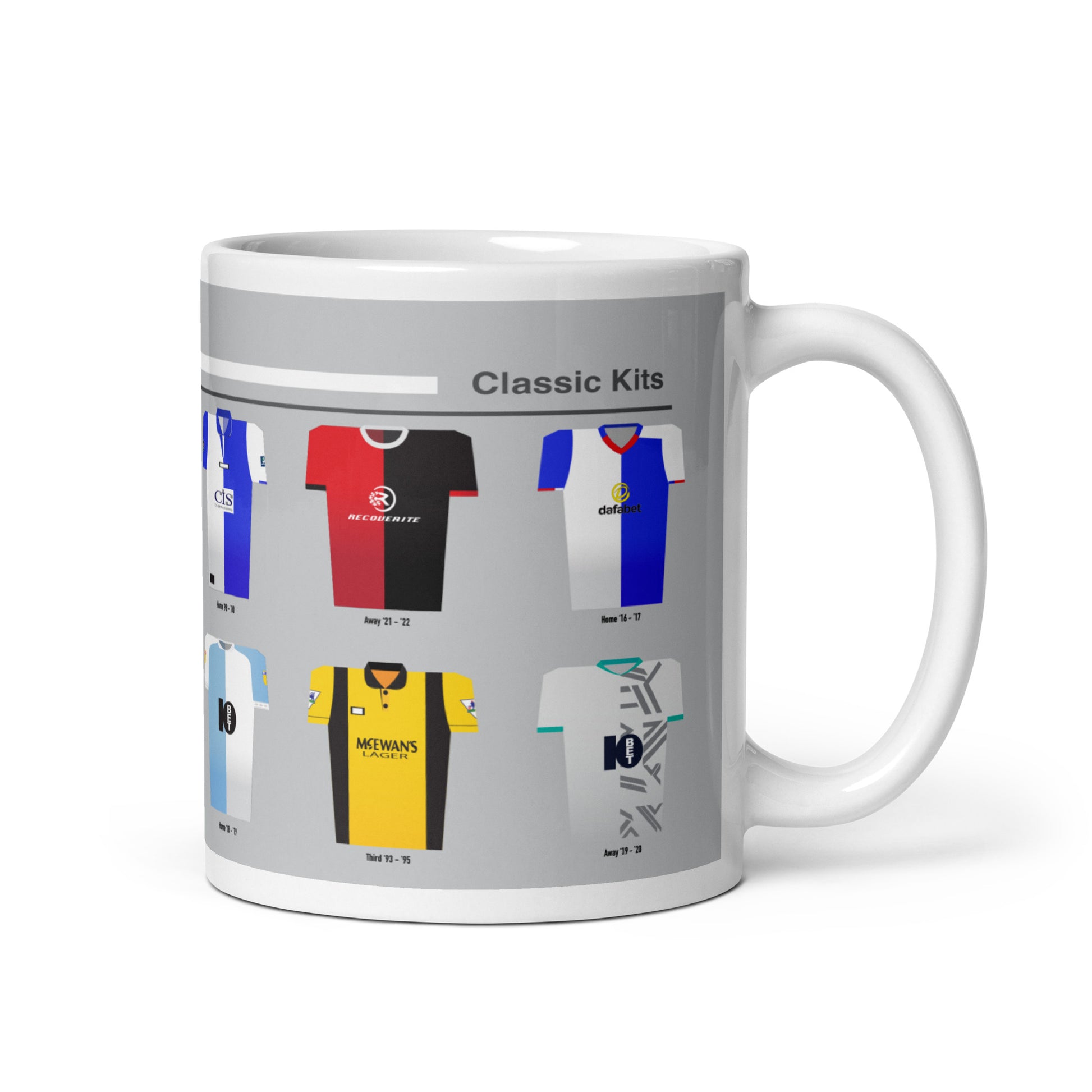 Toast to Blackburn Rovers' illustrious past with our Classic Kits Mug, featuring the iconic jerseys that have graced Ewood Park over the decades. Made from durable, microwave, and dishwasher-safe ceramic, this 11oz mug is an essential for Rovers fans and football enthusiasts. Its vibrant design captures Blackburn's rich footballing heritage, sparking conversations and stirring nostalgic memories with each sip, making it the perfect way to showcase your club pride at home or in the office.